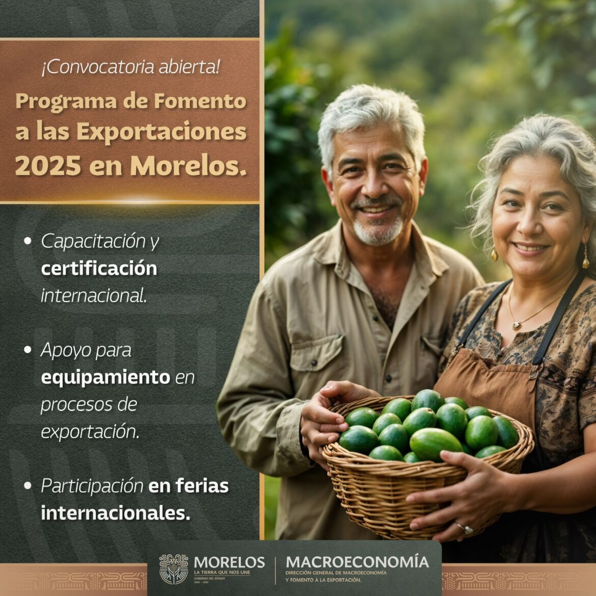 El funcionario estatal señaló que desde la Dirección General de Macroeconomía y Fomento a la Exportación, se otorgarán apoyos dirigidos a micro, pequeñas y medianas empresas, así como a cooperativas y personas productoras de Morelos, con el objetivo es facilitar su acceso a mercados nacionales e internacionales con productos competitivos y certificados.