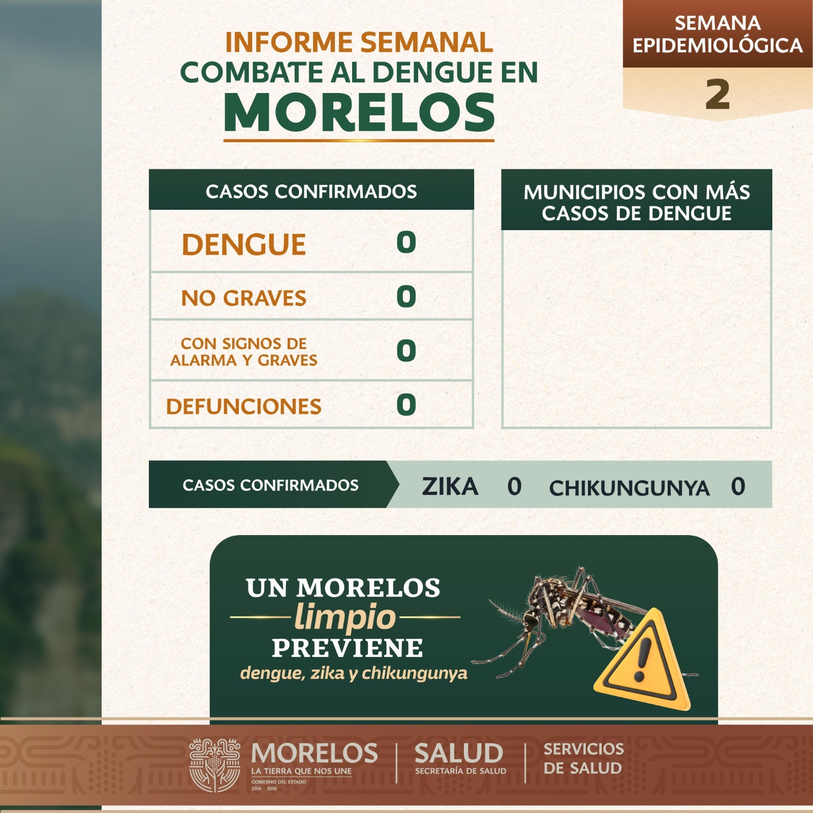 • Hasta la semana epidemiológica número 2 Morelos no ha registrado casos confirmados de estas enfermedades