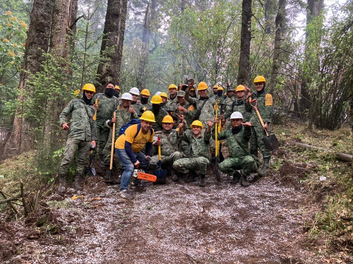 Además de elementos que conforman una brigada de Conafor del Estado de Michoacán y las Brigadas “612” y “ECO”, así como las Brigadas Llanito largo y CIMA de la Conafor de Ciudad de México (CDMX).