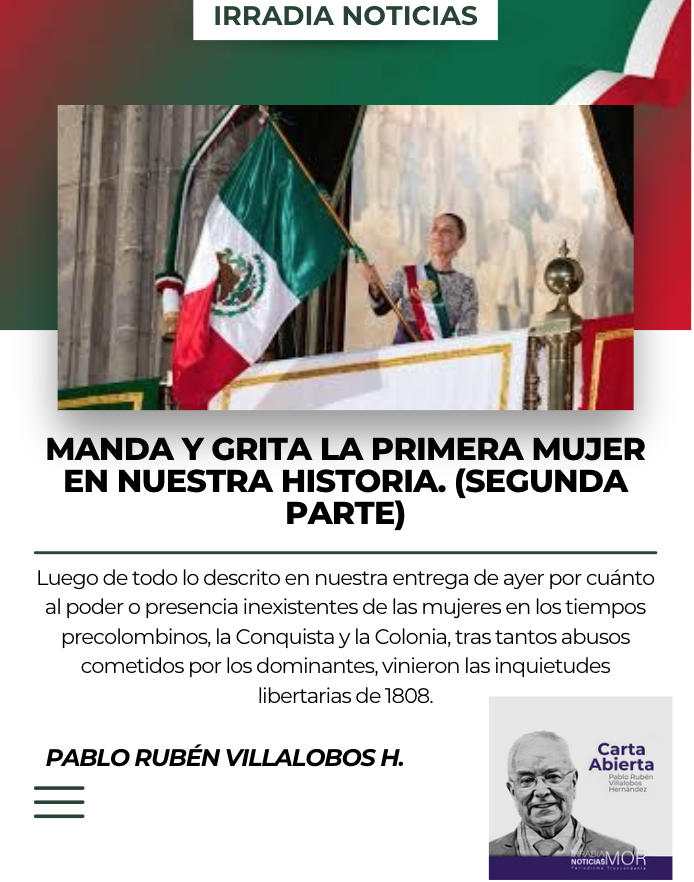 Luego de todo lo descrito en nuestra entrega de ayer por cuánto al poder o presencia inexistentes de las mujeres en los tiempos precolombinos, la Conquista y la Colonia, tras tantos abusos cometidos por los dominantes, vinieron las inquietudes libertarias de 1808 emprendidas por Primo de Verdad y Ramos, Fray Melchor de Talamantes, Gabriel de Yermo y Juan Francisco de Azcárate, movimiento que pronto fue acallado y apaciguado con el sacrificio de aquellos independizadores que dejaron sembrada la semilla libertaria que para 1810, bajo una conspiración mejor eslabonada entre Miguel Hidalgo y Costilla Gallaga párroco del pueblo de Dolores con el militar Ignacio Allende, lo fraguado fue llevado al extremo del levantamiento anticipado por la oportuna comunicación que hiciera en su momento Josefa Ortiz de Domínguez, a la sazón esposa del Corregidor de Querétaro Miguel Domínguez quien denunció tal conspiración ante el Gobierno Virreinal encabezado por Francisco Xavier Venegas, por lo cual los denunciados procedieron al levantamiento con el llamado a los habitantes de aquella población y de otros seguidores quienes como se sabe, bajo la égida del Estandarte Guadalupano enarbolado por el párroco Don Miguel Hidalgo lanzaron el Grito de Independencia y Libertad para la Nueva España la madrugada del 16 de septiembre de 1810, fecha en que se inicia propiamente el Movimiento Libertario para lo que pronto sería ya no la Nueva España ni el Imperio de México sino la República Mexicana… Aquel movimiento creció por esa conspiración llamada de Querétaro donde se reunían Hidalgo, Ignacio Allende, Juan Aldama, Mariano Abasolo y otros conspiradores protegidos y atendidos por doña Josefa Ortiz de Domínguez… La conspiración libertaria de Querétaro quedó al descubierto pero nadie pudo contener el estallamiento que tras cruentas batallas enfrentadas a lo largo del país y extendidas hacia la capital de la República, Guadalajara y hasta Ciudad Juárez, se convirtieran por el Movimiento Libertario de México hasta su consumación el 27 de septiembre de 1821, con el Ejército Trigarante por la Unión, Libertad y Religión como blasones… Con lo anterior queda asentado que la primera mujer heroína libertaria de los mexicanos es por su respeto ganado históricamente Doña Josefa Ortiz de Domínguez, que no Téllez-Girón por cuestiones feministas… Otra mujer independentista los es la gran libertadora doña Leona Vicario, quien perteneció a grupos conspiradores por esta lucha, proporcionando importantes recursos económicos y materiales para la Independencia de la Nueva España; de ella tiene gran significado el hecho de haber sido esposa de don Andrés Quintana Roo el hombre que encabezó la redacción del Acta de Nuestra Independencia; a quien se reconoce como Benemérita y la Primera Periodista del País… Son ellas las dos mujeres más relevantes del Movimiento Libertario de 1810, a las cuales la actual Mandataria por aquello del feminismo agregó a la espía y mensajera de la lucha libertaria por los rumbos de Pátzcuaro Michoacán su tierra de origen Gertrudis Bocanegra junto con su paisana Manuela Molina La Capitana, cuyos méritos pueden ser relevantes como los cientos de mujeres y miles de hombres anónimos que lucharon y ofrendaron su vida por nuestra libertad… Si la Presidenta, la Gobernadora de nuestro Estado o algunas feministas se interesan por rescatar nombres de mujeres de la etapa insurgente, les sugerimos hurgar en Morelos por los rumbos de Cuautla durante el Sitio que resistió esa nuestra ciudad, con sus heroicas y heroicos vecinos… Posterior a esta etapa, vienen una tras otra las sucesivas luchas que intentaron retornar a este País ya llamado México tras la consumación de la Independencia, primero al Imperio con Iturbide y luego tras años de lucha intestina la presencia de los reformadores con las leyes de esa etapa que le dieron a nuestro País y a los mexicanos la Constitución de 1857 con su consistencia jurídica como República con Benito Juárez, siempre acompañado por su esposa Margarita Maza de Juárez… Pronto se intentó reinstalar de nuevo el Imperio con Maximiliano y luego El Porfiriato que tuvo progresos para el País pero también gran explotación para los campesinos y los obreros lo cual culminó con el estallamiento de la Revolución y la etapa post revolucionaria en la cual participaron decenas de mujeres que en efecto, han sido coparticipes por las luchas reivindicadoras de sus derechos, hasta llegar a esta etapa que pareciera ser la cúspide impositiva tras el empoderamiento de las féminas en los distintos espacios del ejercicio y desempeño gubernamentales con Claudia Sheinbaum al frente… Continuará. ¡Hasta mañana que será un día más!