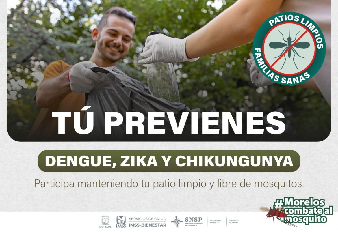 Servicios de Salud de Morelos (SSM) recomendó a la población intensificar acciones de patio limpio en el hogar, para eliminar criaderos de mosquitos transmisores de dengue, zika y chikungunya.