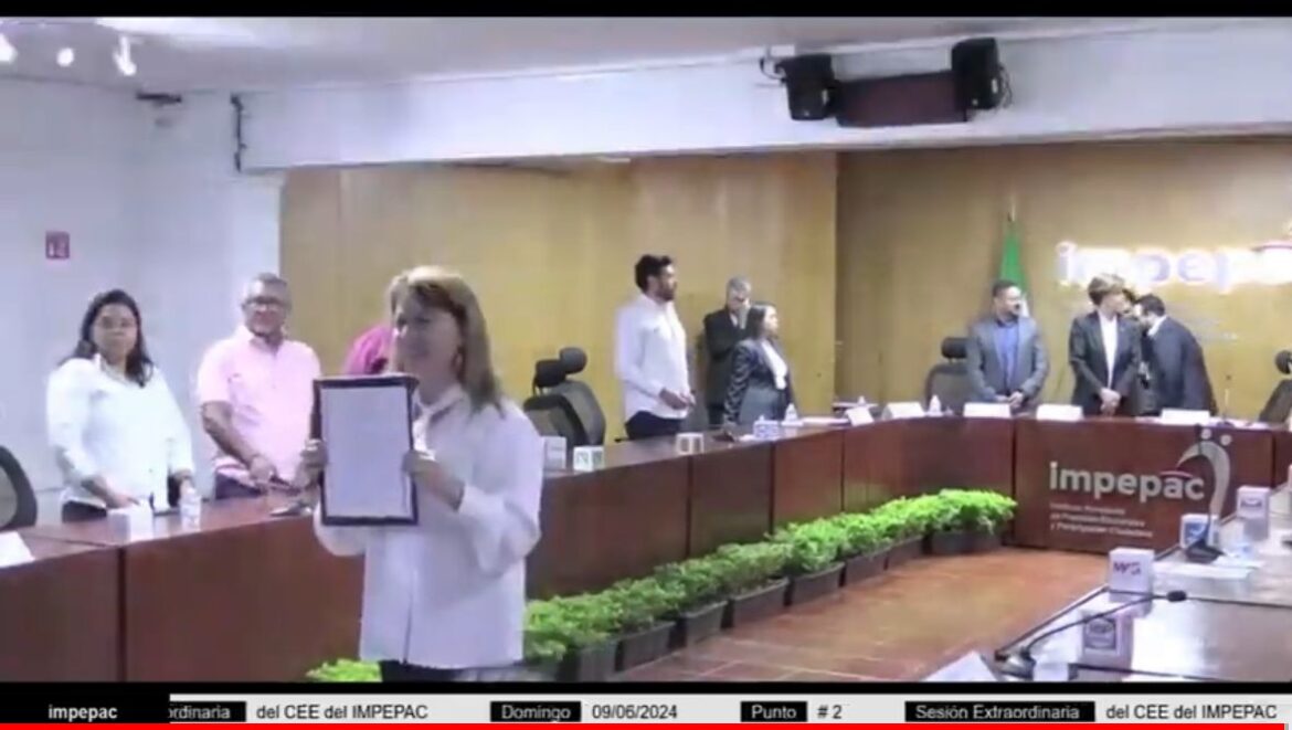 En la sesión extraordinaria del IMPEPAC fue emitida la declaración de validez y calificación de la elección del pasado 2 de junio a favor de la candidata abanderada por Morena, Nueva Alianza, Partido del Trabajo, Partido Encuentro Social, Partido Verde Ecologista y Movimiento Alternativa Social.
