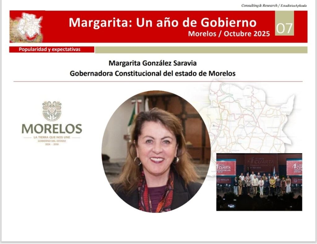 Este es un estudio demoscópico de carácter público, cuyos resultados pretenden ser de utilidad para conocer la opinión de los ciudadanos morelenses acerca del primer año de gestión de Margarita González Saravia como Gobernadora Constitucional del Estado de Morelos.