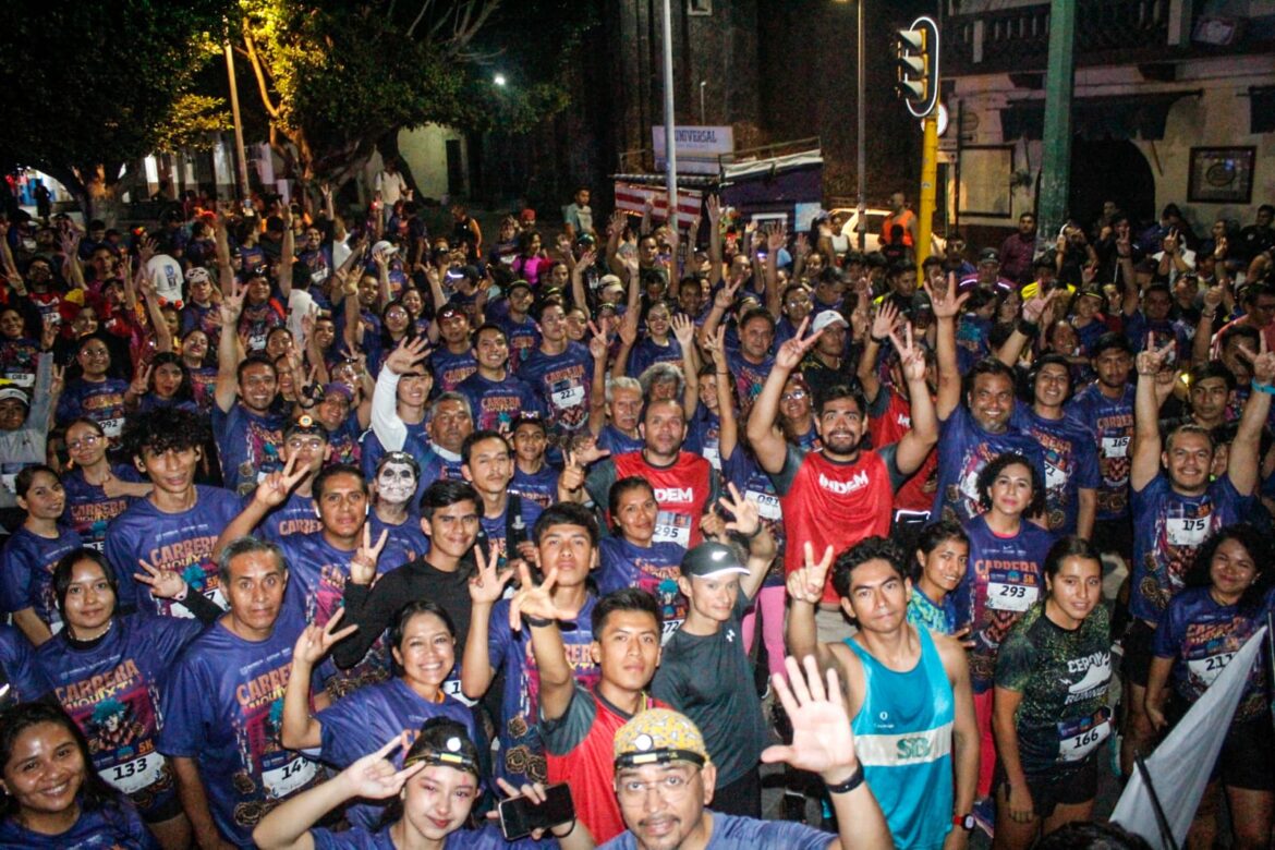 Los participantes, caracterizados de calaveras, catrinas y figuras aztecas, llenaron las calles de Cuernavaca de vida y tradición en una noche en la que se conmemoró el Día de Muertos, y donde se fusionó el deporte con las tradiciones mexicanas.