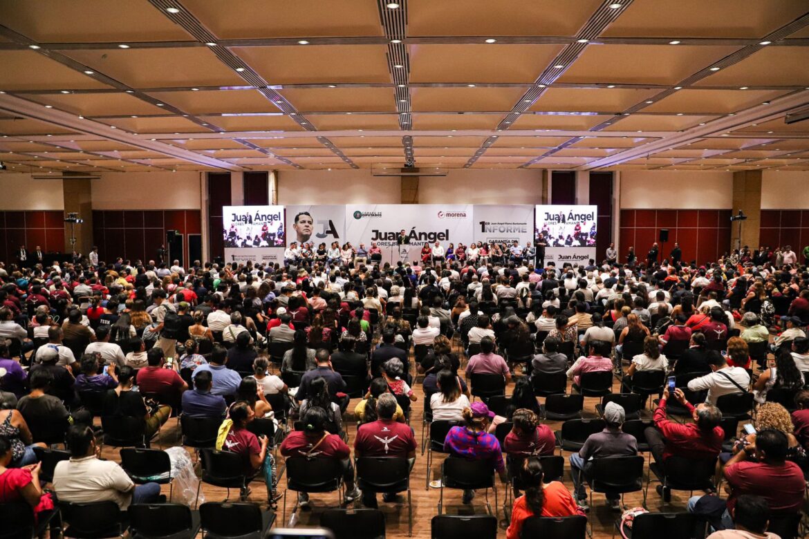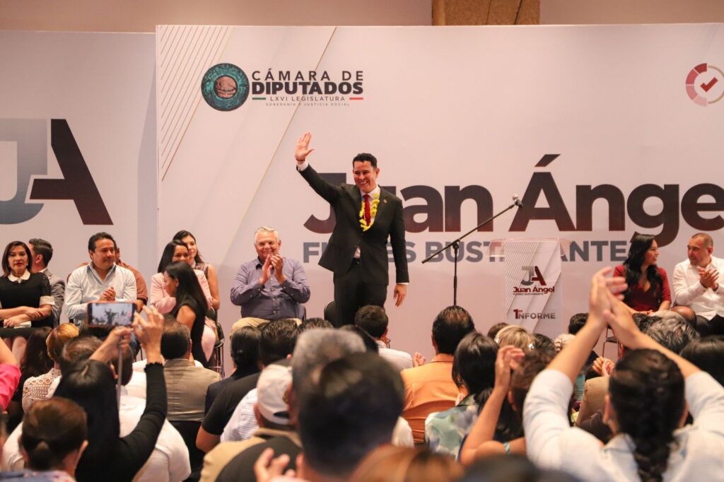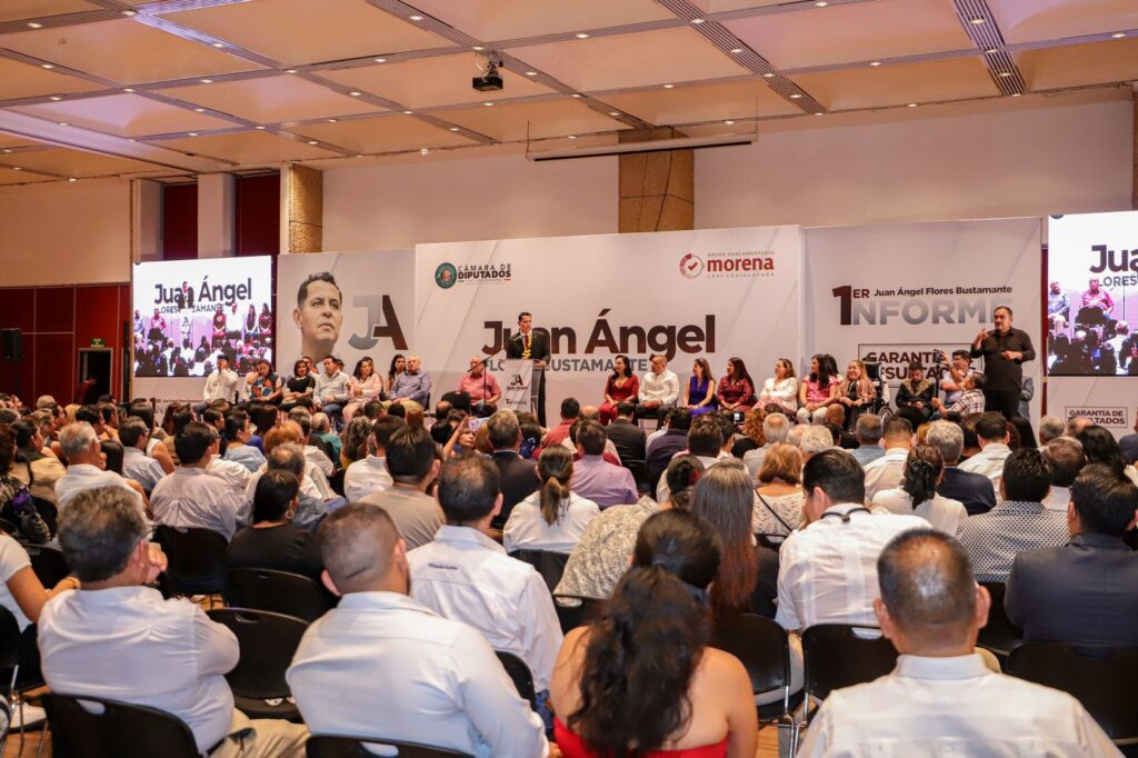 Ante miles de asistentes, el diputado federal, Juan Ángel Flores Bustamante, presentó su primer informe de trabajo legislativo, en donde destacó más de 500 atenciones a solicitudes ciudadanas y apoyos sociales, en distintos rubros, así como su participación en la aprobación de reformas y leyes en materia de seguridad y contra la extorsión.
