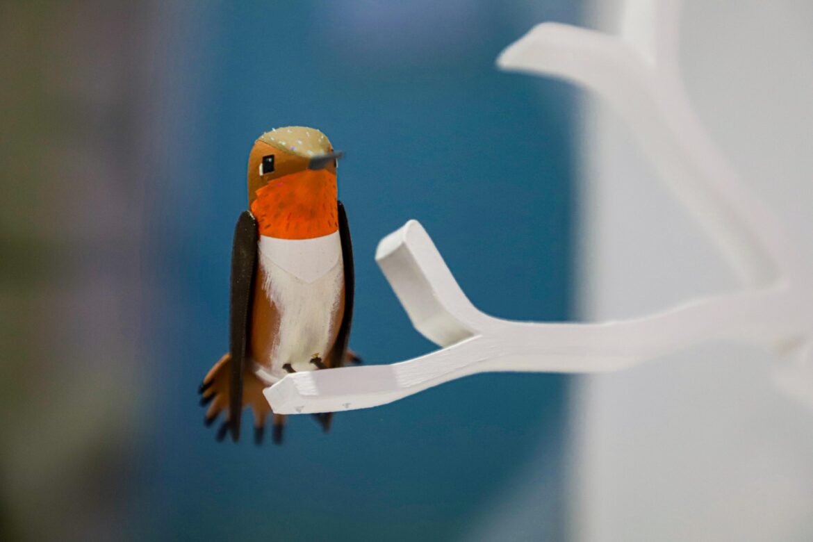 Asimismo, se presentaron 21 esculturas de colibríes en tamaño real, elaboradas con materiales de bajo impacto ambiental. Cada pieza representó a una especie nativa del estado de Morelos y estuvo acompañada de fichas informativas, ambientación sonora y recursos museográficos que propiciaron una experiencia inmersiva, simulando el hábitat natural de estas aves.