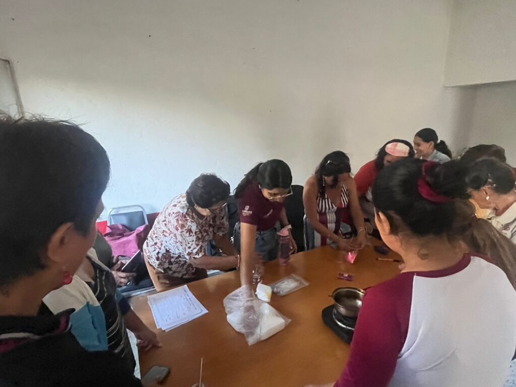 Durante la jornada se abordaron contenidos teóricos y prácticos relacionados con los materiales y medidas de seguridad necesarias para la elaboración de velas. Posteriormente, se realizó una demostración guiada y las participantes, quienes elaboraron sus propias piezas, de manera individual y en grupo, con acompañamiento permanente; este proceso permitió el intercambio de experiencias, la resolución de dudas y reflexión colectiva, lo que favorece un aprendizaje significativo orientado a la autonomía económica.