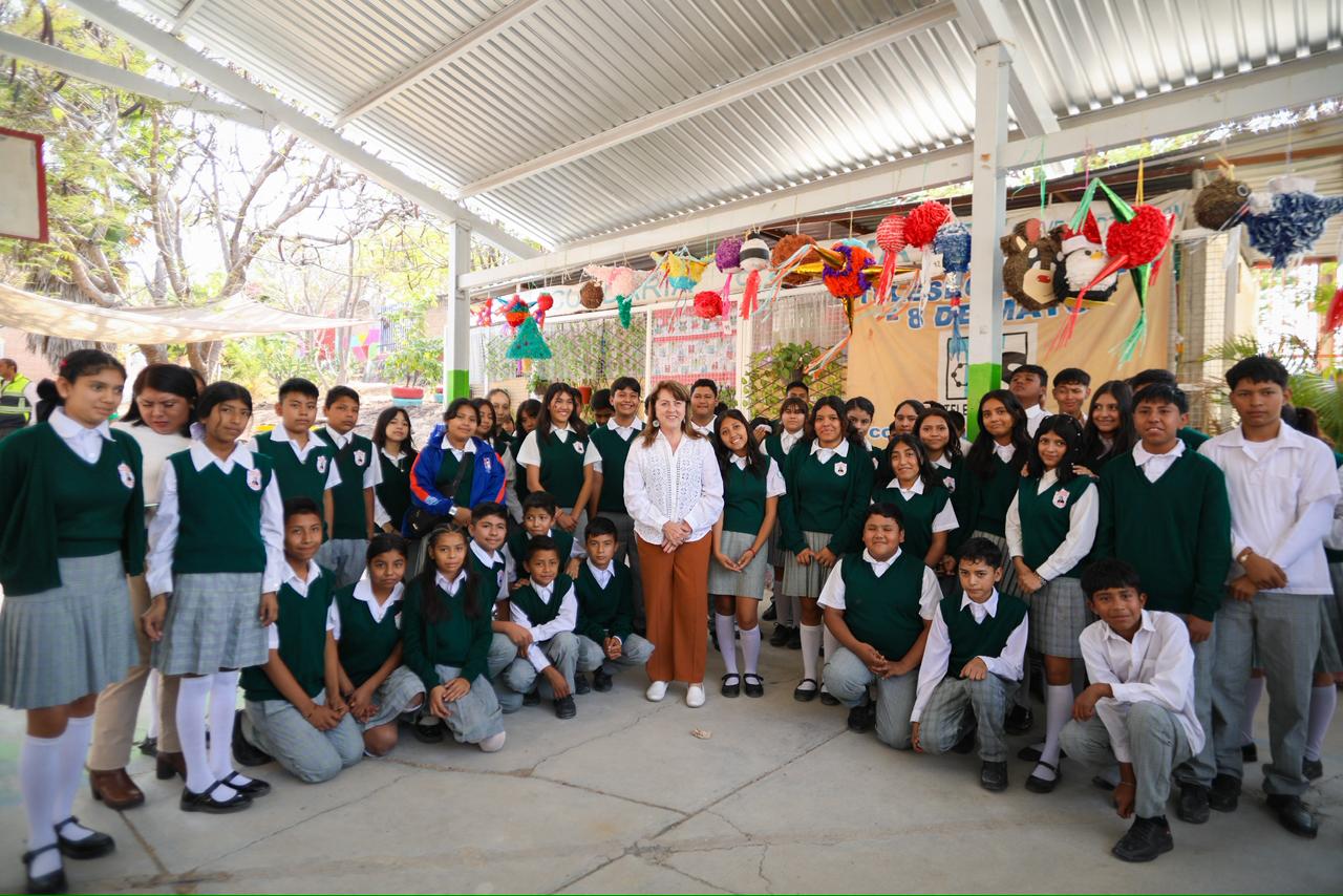 La titular del Poder Ejecutivo, Margarita González Saravia, Inauguró la techumbre del CETis 99 y supervisó trabajos de construcción en la telesecundaria 8 de Mayo