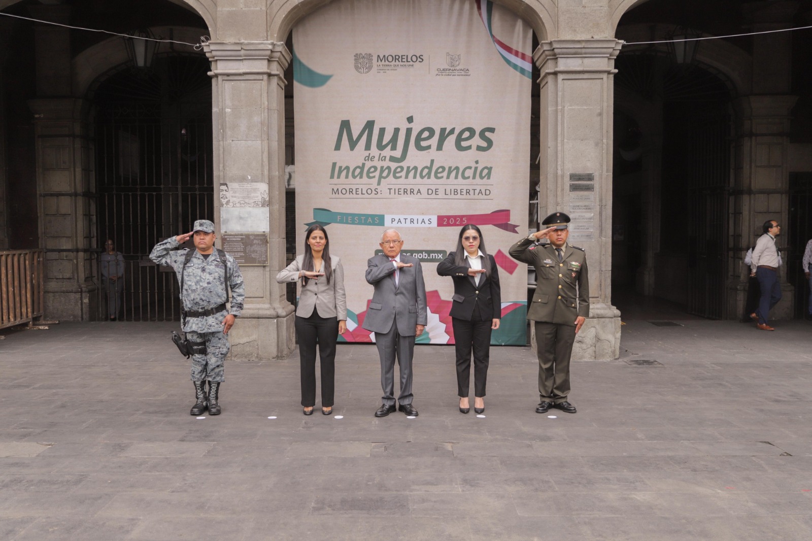 El secretario de Gobierno, Juan Salgado Brito, encabezó el segundo día de izamiento de bandera a toda asta en la “Plaza de Armas General Emiliano Zapata Salazar”, en Cuernavaca, con motivo del 215 aniversario de la Gesta Heroica de la Independencia de México, dedicado a las Mujeres de la Independencia.