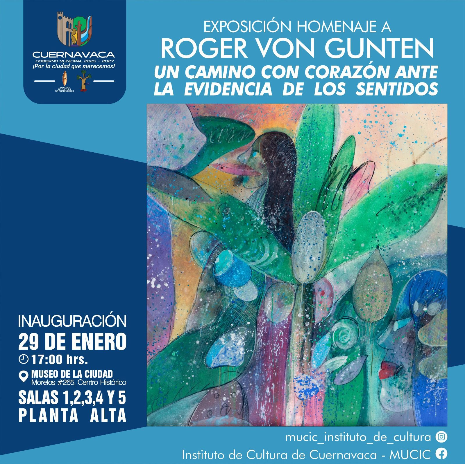 La Secretaría de Desarrollo Humano y Participación Social (SDHyPS), a través del Instituto de Cultura de Cuernavaca, invita al público a la inauguración de la exposición Homenaje a Roger von Gunten: Un camino con corazón ante la evidencia de los sentidos, que se llevará a cabo este jueves 29 de enero a las 17:00 horas en el Museo de la Ciudad de Cuernavaca (MuCiC).