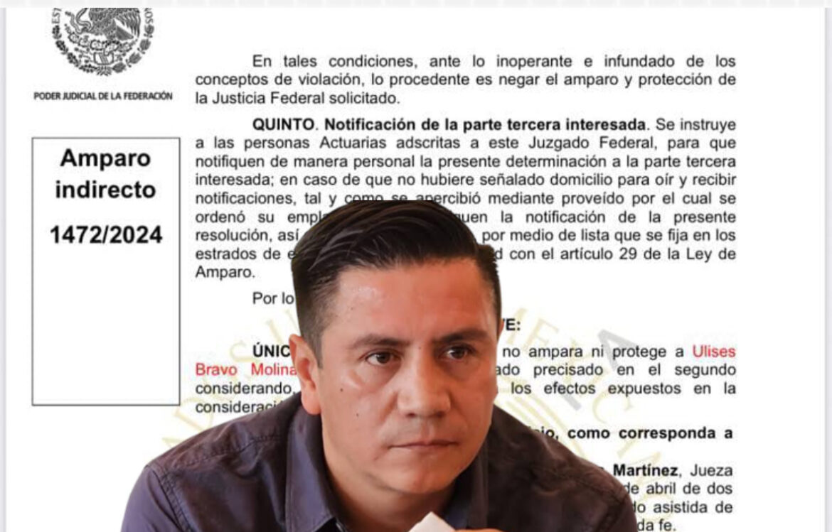 La sentencia fue emitida el 30 de abril de 2025 por la jueza Ana Columba Contreras Martínez, quien calificó los argumentos de la defensa como “inoperantes e infundados”, y concluyó que no hay elementos para otorgarle la protección de la justicia federal.