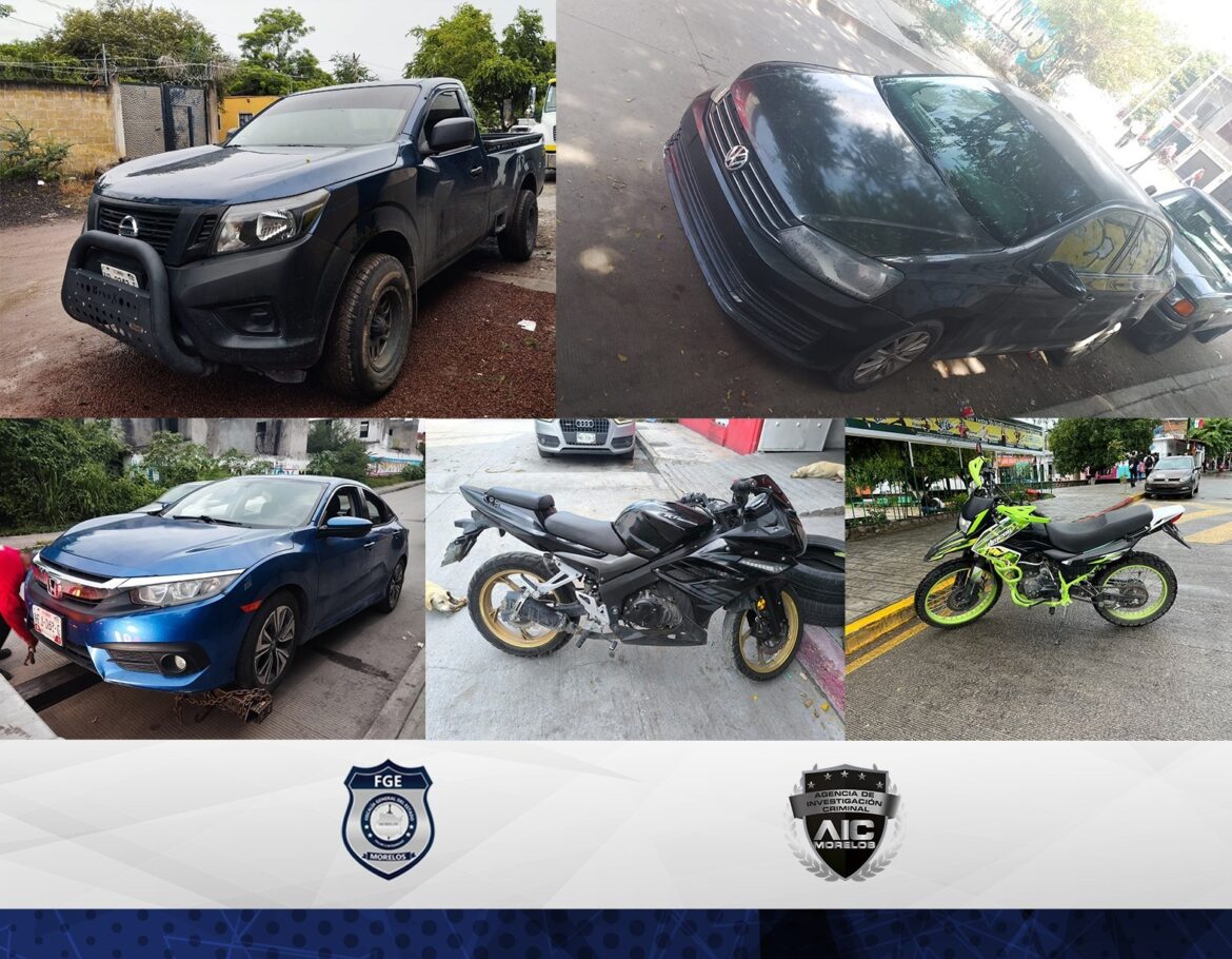 El despliegue realizado por los elementos de la AIC abarcó los municipios de Jojutla, Zacatepec y Puente de Ixtla, donde se logró la recuperación de estos nueve vehículos, algunos de ellos con alteraciones en sus números de identificación y otros reportados como robados.