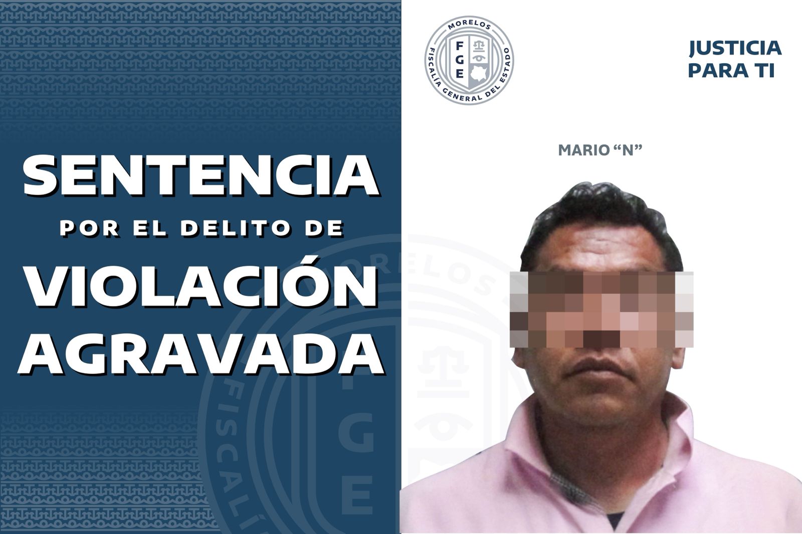 La Fiscalía General del Estado (FGE) de Morelos obtuvo una sentencia de 30 años de prisión en contra de Mario “N”, hallado responsable del delito de violación en agravio de una adolescente, en hechos suscitados en el municipio de Jiutepec.