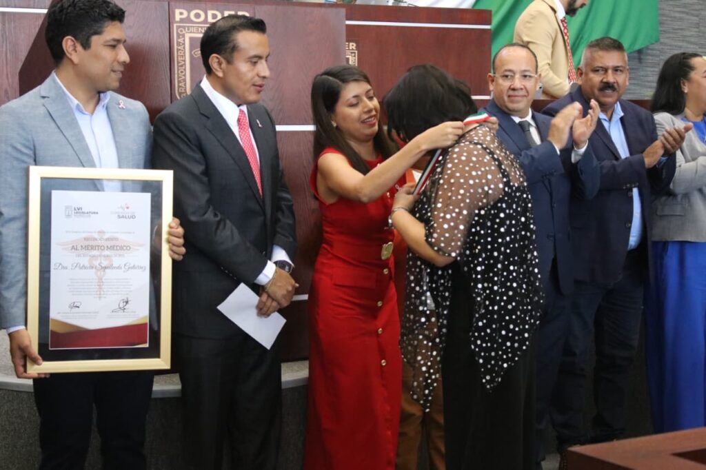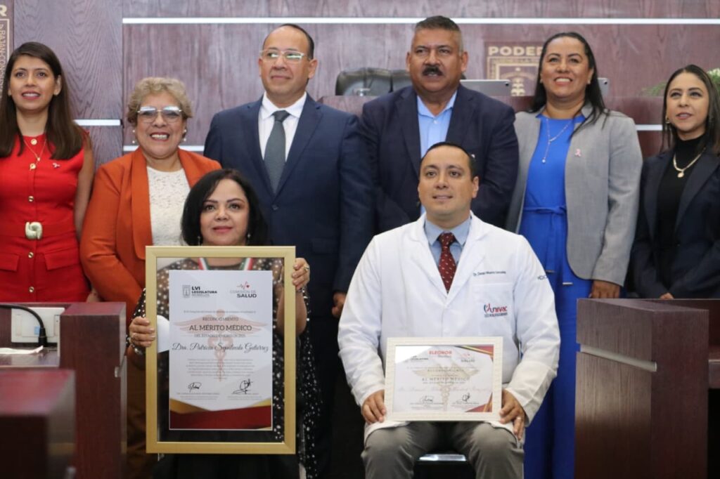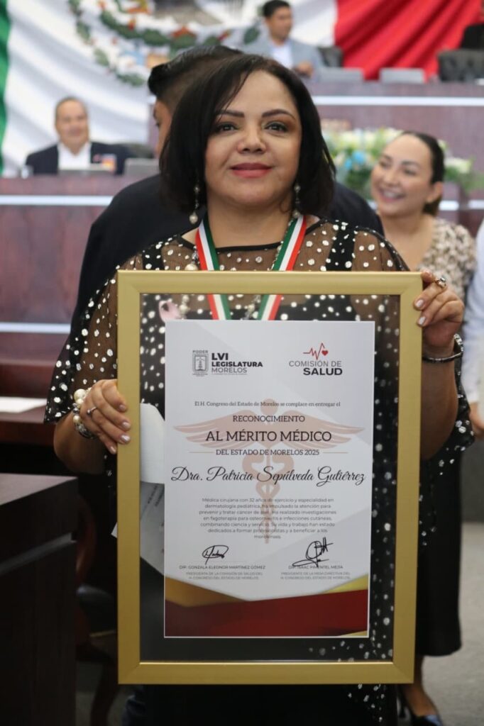 A través de la Comisión de Salud que preside la diputada Eleonor Martínez Gómez, el Congreso local entregó este día el Reconocimiento al Mérito Médico del Estado de Morelos 2025 a la Dra. Patricia Sepúlveda Gutiérrez, el cual se otorga a quien se distingue por sus aportaciones científicas o tecnológicas y sociales en favor de la salud, su sensibilidad humana, disposición y entrega permanentes en el desempeño de esta noble labor en beneficio de la sociedad.
