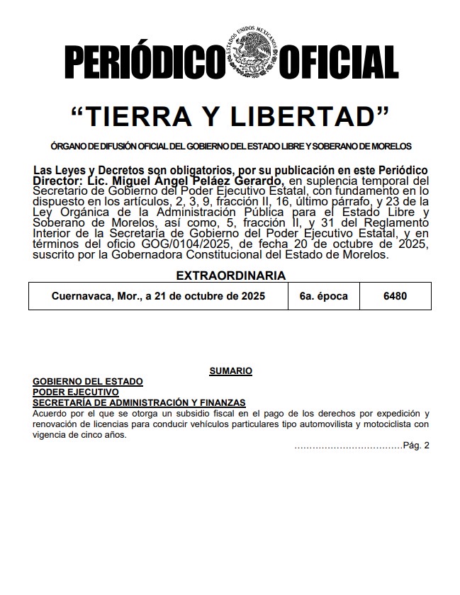 La medida, publicada en la edición 6480 del Periódico Oficial “Tierra y Libertad”, establece que con este subsidio el precio de la licencia de automovilista se reduce de 894 a 447 pesos, mientras que la licencia de motociclista pasa de 781 a 391 pesos.