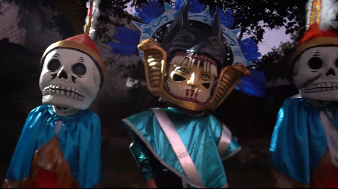 A través del arte de la cartonería, el colectivo elabora coloridas máscaras y vestimenta para sus danzas, mostrando la creatividad y habilidad de la niñez del municipio.