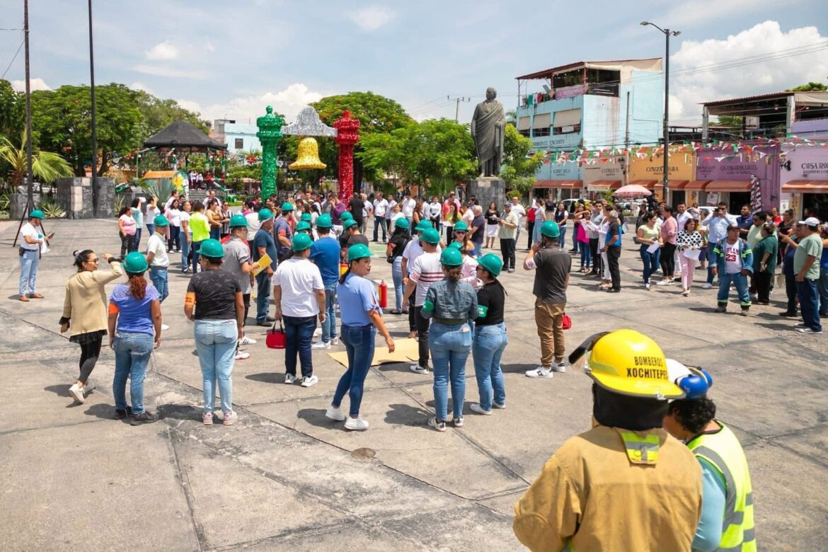 A las 12:00 horas en punto, sonó la alerta sísmica y, bajo la hipótesis de un movimiento telúrico de magnitud 8.1 con epicentro en Zihuatanejo, Guerrero, el personal actuó como si se tratara de un evento real desalojando Palacio Municipal, Sistema DIF Xochitepec, Unidad Básica de Rehabilitación (UBR), entre otros inmuebles.