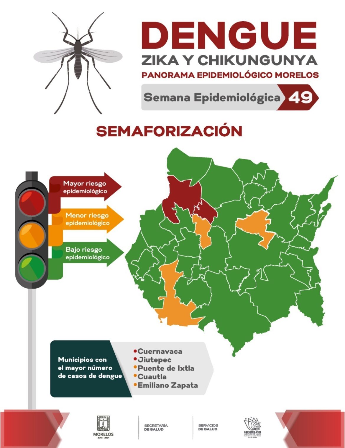 Finalmente, Sesma Medrano indicó que a la semana epidemiológica 49, se registran cuatro mil 102 casos acumulados de dengue de todo el sector salud, de los cuales 957 están catalogados como no graves y tres mil 145 con signos de alarma y graves, siendo Cuernavaca, Jiutepec, Puente de Ixtla, Cuautla y Emiliano Zapata las demarcaciones con el mayor número de casos confirmados, así como 34 lamentables defunciones; además, se tienen 26 casos de zika y hasta el momento se continúa sin casos de chikungunya.