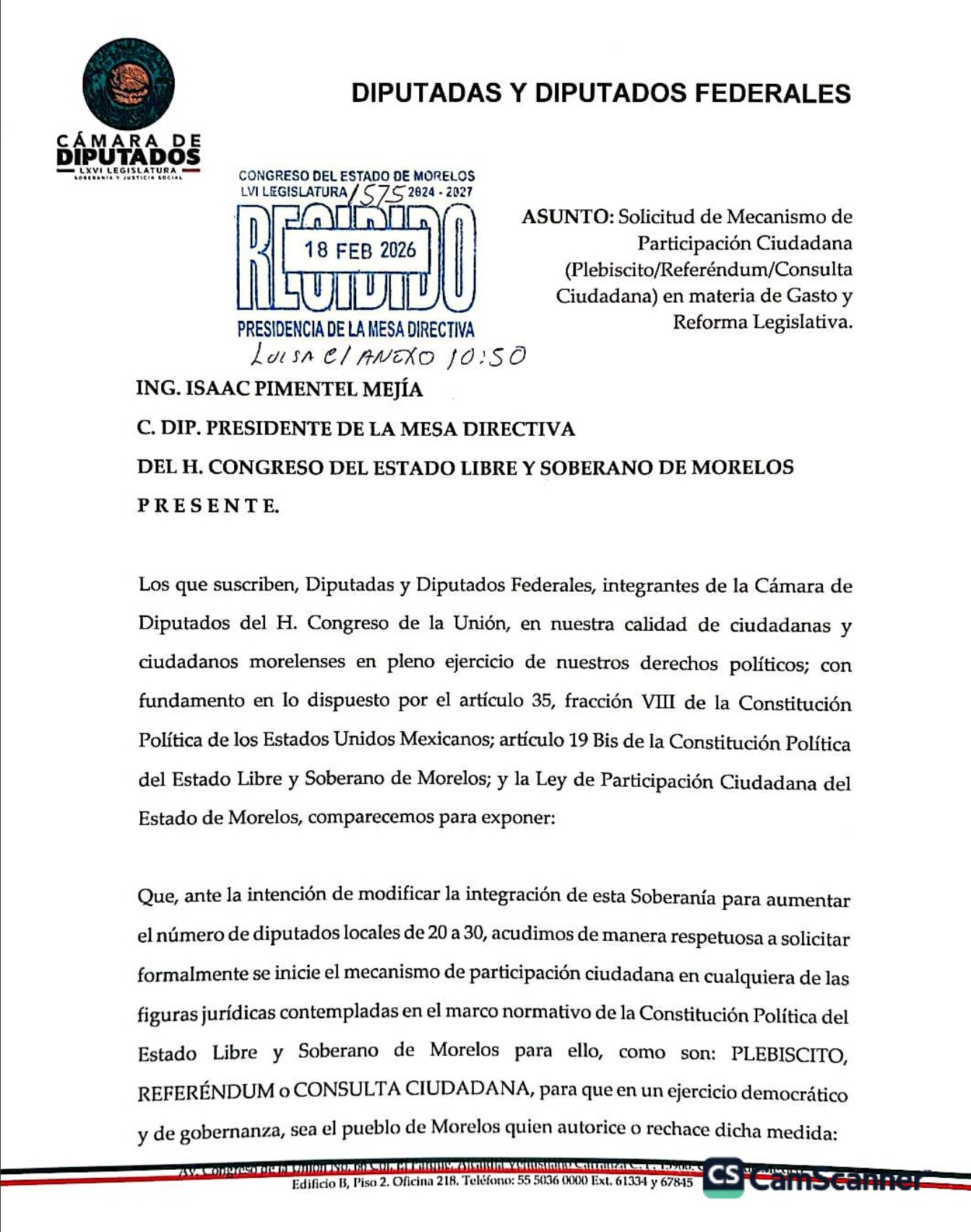 CurulPrincipal PIDEN DIPUTADOS FEDERALES A LOCALES CONSULTA CIUDADANA PARA DETERMINAR INCREMENTO DE CURULES Por Irradia Noticias febrero 19, 2026 written by Irradia Noticias febrero 19, 2026 143 Screenshot Screenshot 0 comentario 0 FacebookTwitterPinterestEmail Irradia Noticias previous post IMPLEMENTA GOBIERNO DE MORELOS VINCULACIÓN LABORAL DE JÓVENES UNIVERSITARIOS next post IMPULSA CCYTEM VOCACIONES CIENTÍFICAS EN NIÑAS Y NIÑOS MEDIANTE EL RALLY DE LA CIENCIA You may also like VINCULAN A PROCESO A JARED ALEJANDRO POR DESAPARICIÓN... marzo 6, 2026 MELISSA MONTES DE OCA IMPULSA DIÁLOGO CON EL... marzo 6, 2026 ALERTA EN LA UAEM: DESAPARECE ALONDRA CONTRERAS, ESTUDIANTE... marzo 6, 2026 CON CLARA CONDENA A LA VIOLENCIA FEMINICIDA, EL... marzo 5, 2026 CON CLARA CONDENA A LA VIOLENCIA FEMINICIDA, EL... marzo 5, 2026 LOCALIZAN CUERPO EN BÚSQUEDA DE KAROL; LA UAEM... marzo 5, 2026 FISCALÍA LOCALIZA CUERPO SIN VIDA EN OPERATIVO DE... marzo 5, 2026 AVANZA MÁXIMO MÉNDEZ RUMBO A LA SELECCIÓN MEXICANA... marzo 5, 2026 DIPUTADA MELISSA MONTES DE OCA EXIGE JUSTICIA PARA... marzo 5, 2026 REPORTAN DESAPARICIÓN DE OTRA JOVEN ESTUDIANTE DE LA... marzo 4, 2026 Leave a Comment Cancel Reply Save my name, email, and website in this browser for the next time I comment.