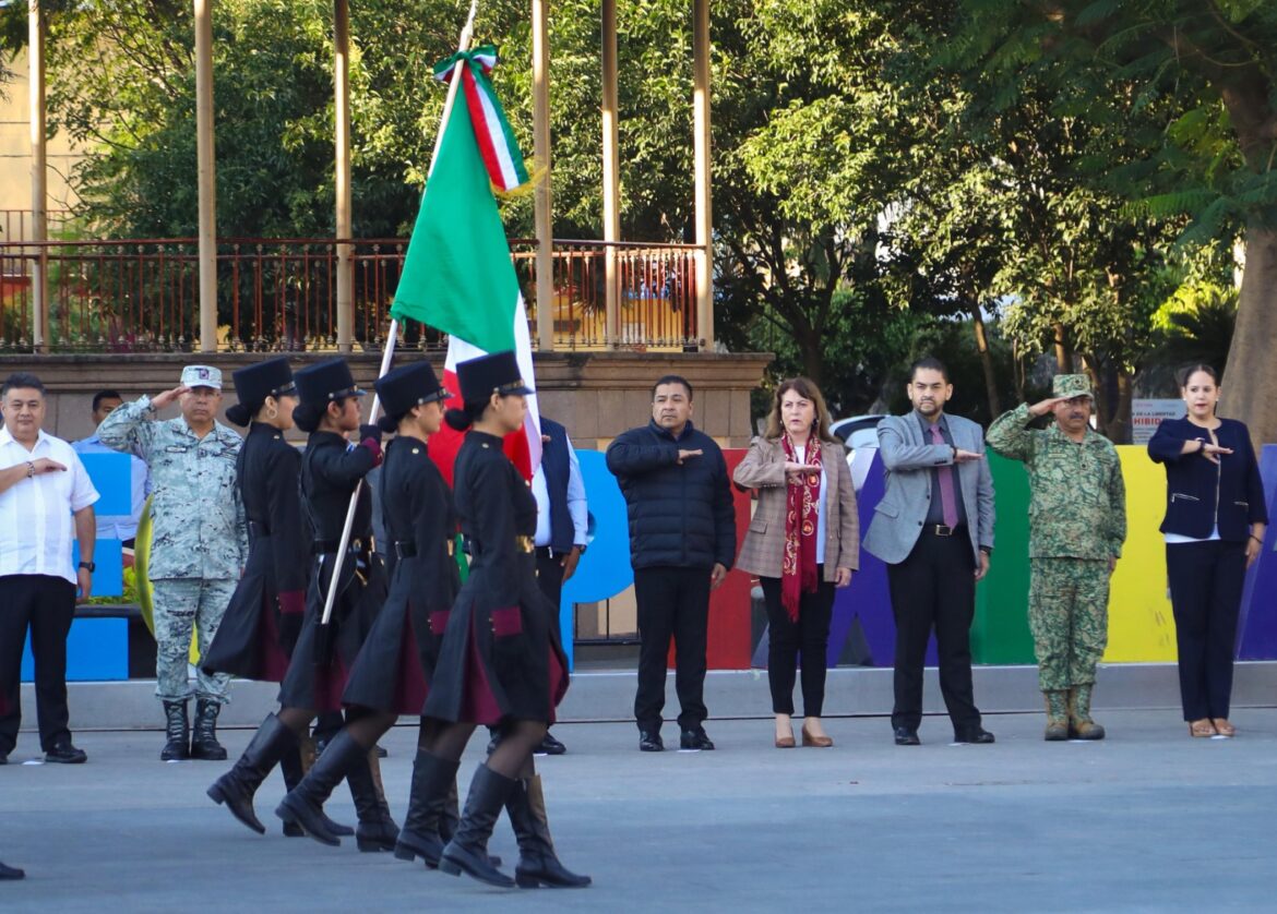 Previo a la presentación de los programas, la Gobernadora encabezó los Honores a la Bandera en la “Plazuela de la Libertad” junto a autoridades civiles, militares y estudiantes de la Escuela Secundaria Técnica Número 5 y del Colegio de Estudios Científicos y Tecnológicos (CECyTE) de Yecapixtla.