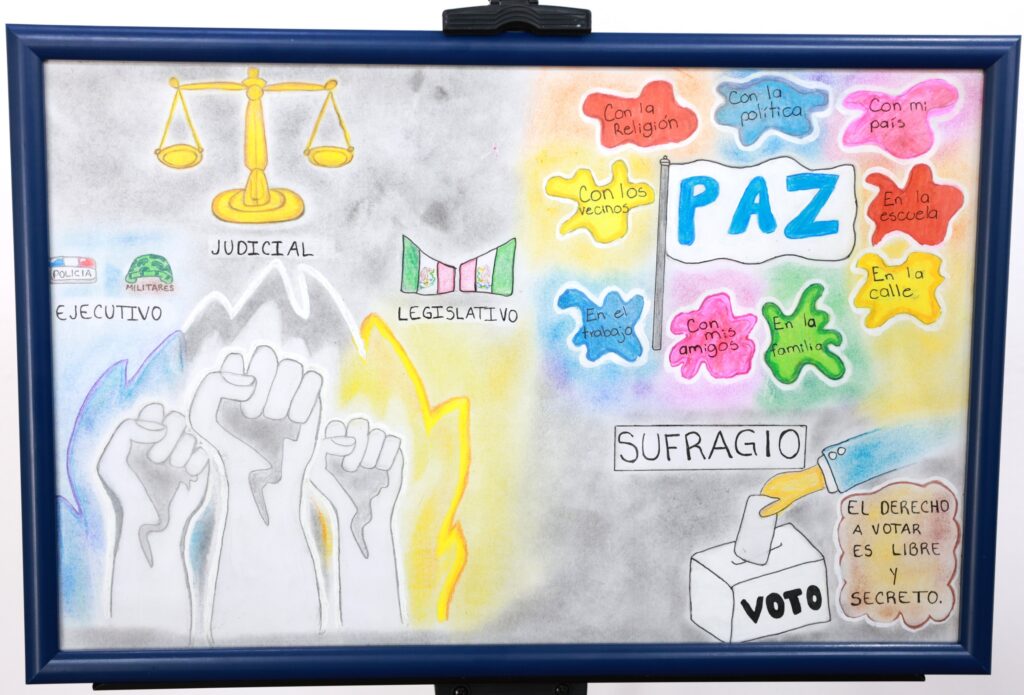 •Segundo Lugar: dibujo “La democracia es construir en equipo”, que representa la democracia como un ejercicio colectivo de construcción social.