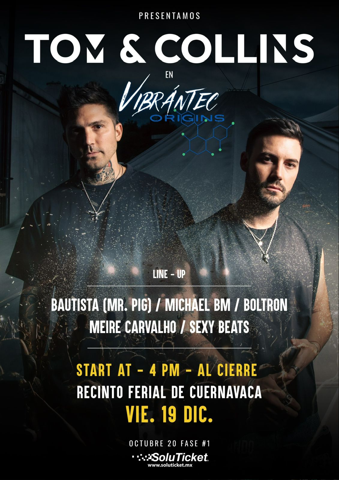 12pm TOM & COLLINS (el duo mexicano ya internacionalmente famoso, colocado en los primeros lugares en las listas mundiales de los TOP DJS, ha tocado varias veces en TOMORROWLAND Belgica)