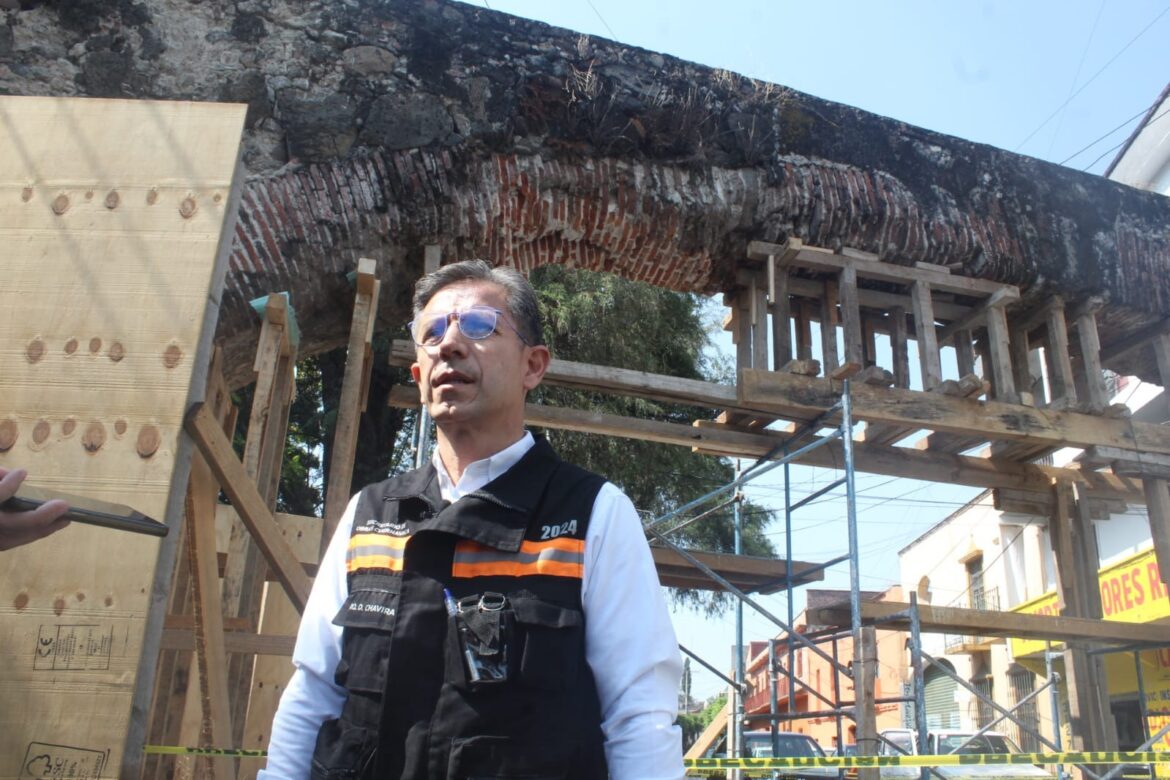 Lo anterior, al detectar en el marco de revisión de las fisuras al retirar los aplanados del acueducto que en realidad presenta problemas estructurales, registrando una fractura que deriva de los golpes que ha padecido por el paso de camiones, la falta de mantenimiento y la erosión con el tiempo, siendo de suma relevancia su atención profesional, ya que, ante un sismo, el paso de vehículos y algún golpe era inminente la caída de la estructura.