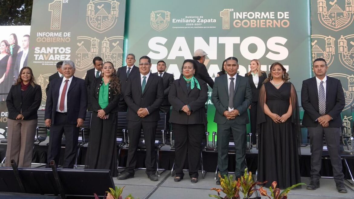 Emiliano Zapata, Morelos.– Ante más de 10 mil personas, y por encargo del presidente municipal Santos Tavarez García, el Ayuntamiento de Emiliano Zapata presentó el Primer Informe de Gobierno, en el que se dio cuenta de los avances y acciones realizadas durante el primer año de la administración, consolidando un ejercicio de gobierno cercano, responsable y enfocado en generar resultados en beneficio de la población.
