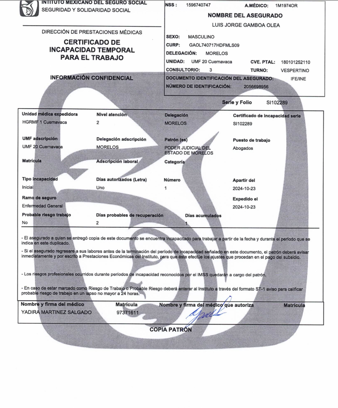 La mañana de este miércoles se convocó a Sesión de Pleno en el Honorable Tribunal Superior de Justicia del Estado de Morelos. Sin embargo, debido a un impedimento de salud del Magistrado Presidente, Dr. en Derecho Luis Jorge Gamboa Olea, respaldado por justificación médica, no fue posible su asistencia al Pleno.