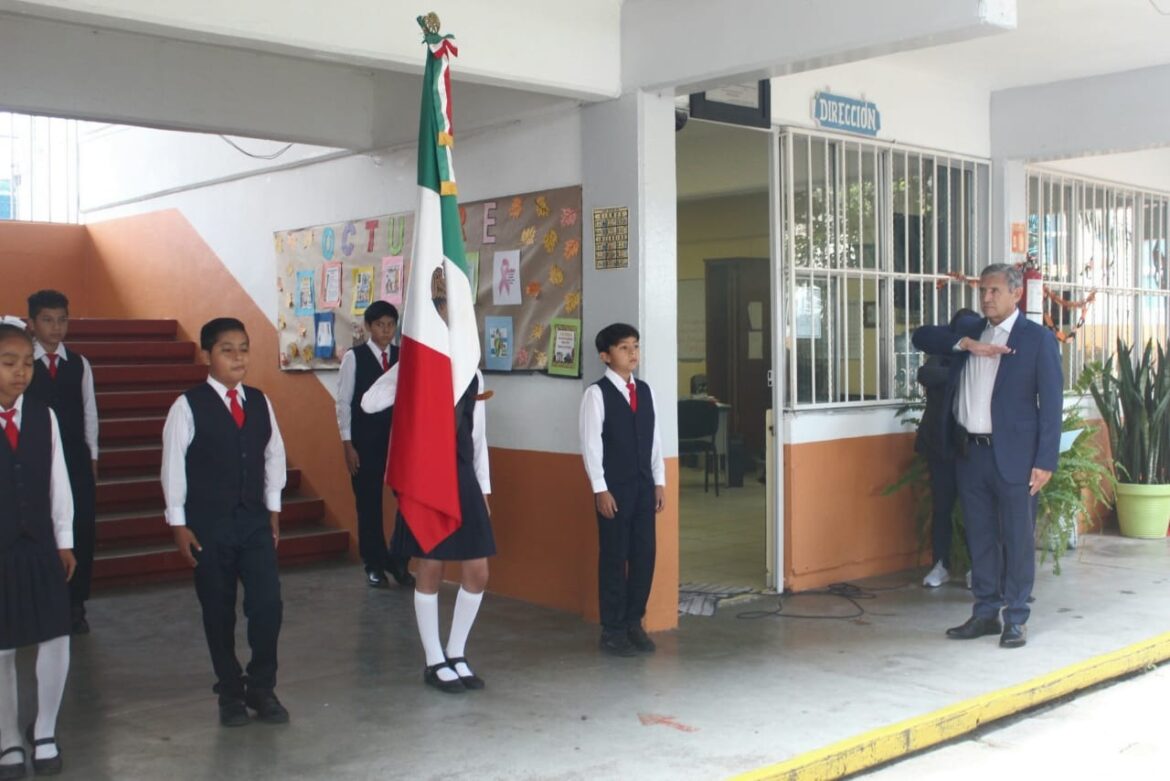 • Encabezó la ceremonia de honores a la bandera y aplaudió que se preserven tradiciones en las escuelas como el Día de Muertos