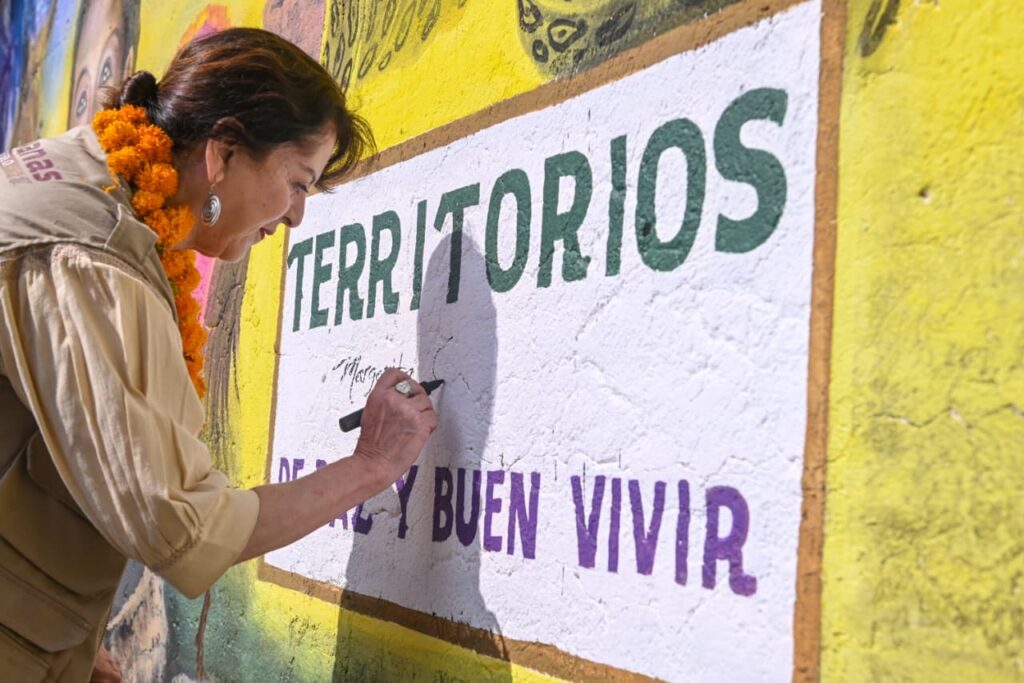 Cabe mencionar que, previo al acto protocolario de inicio de la jornada, la titular del Poder Ejecutivo inauguró un mural de los artistas Rodrigo Tapia y Miguel Barba, en el que se plasman las festividades y tradiciones del municipio indígena.