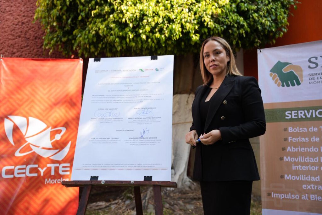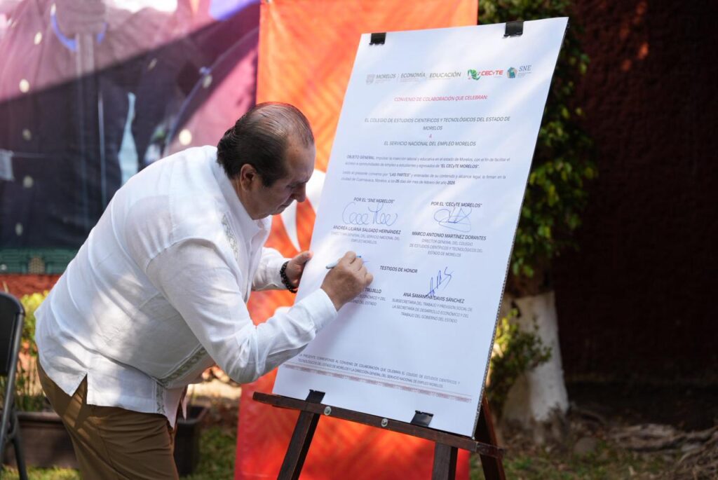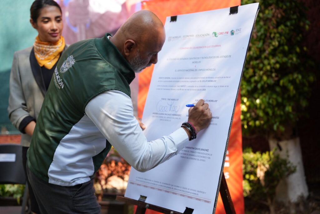 Con el objetivo de fortalecer la inserción laboral de las juventudes y la vinculación entre la educación técnica y el empleo, el Gobierno de Margarita González Saravia, a través de la Secretaría de Desarrollo Económico y del Trabajo (SDEyT) y el Servicio Nacional de Empleo (SNE) Morelos, suscribió un convenio de colaboración con el Colegio de Estudios Científicos y Tecnológicos del Estado de Morelos (Cecyte) Morelos.