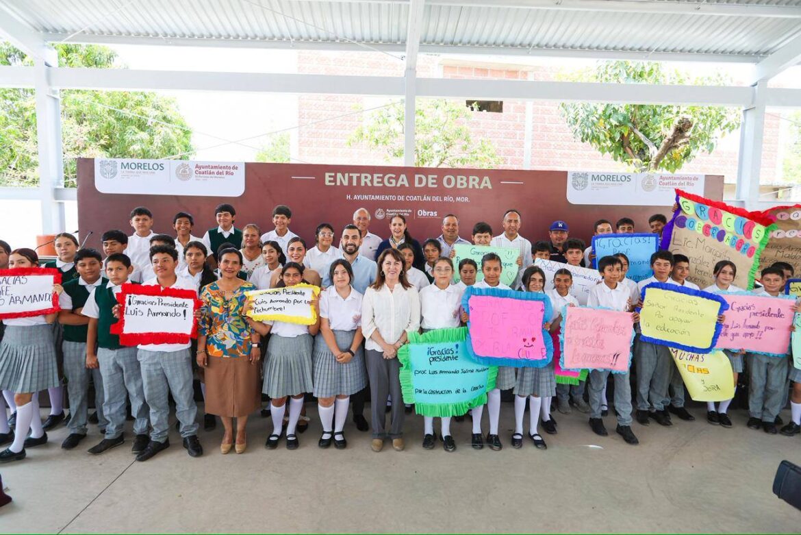 • La mandataria morelense inauguró la construcción de una techumbre en la Escuela Primaria “Ignacio Pastrana” de Coatlán del Río
