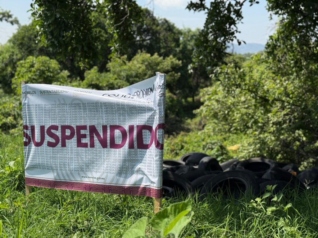 La Secretaría de Desarrollo Sustentable (SDS) informa que durante un operativo de inspección en el municipio de Tepoztlán, en la zona conocida como “La Franja”, dentro del Área Natural Protegida (ANP) El Tepozteco, se colocaron sellos de suspensión en un predio que era utilizado como tiradero de llantas.