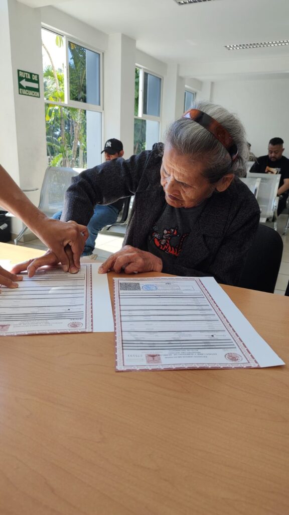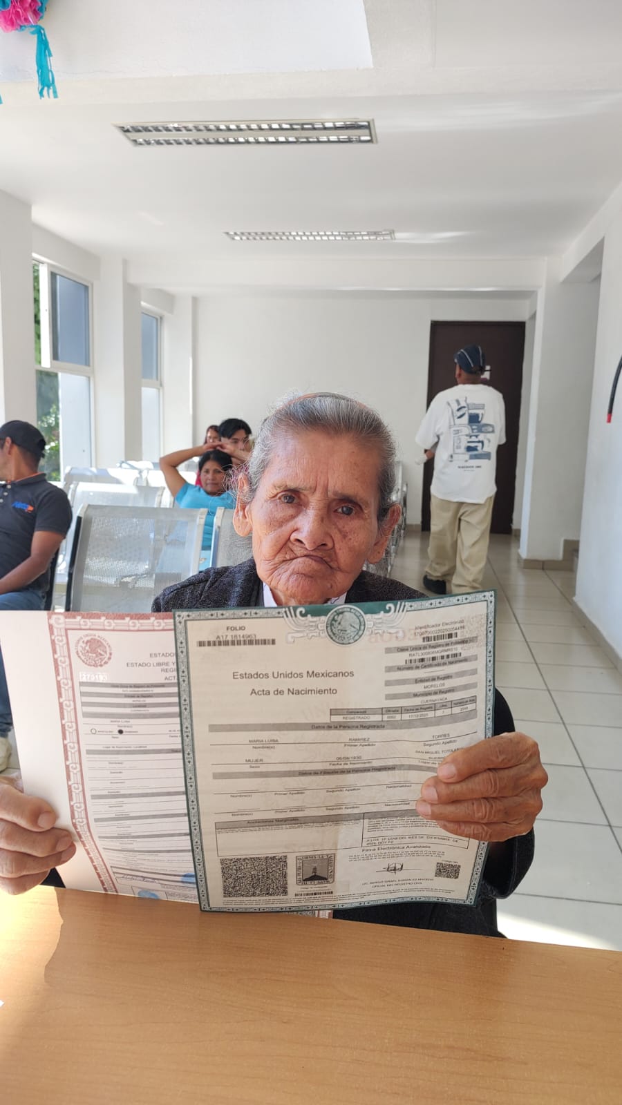 La Dirección General del Registro Civil de la Secretaría de Gobierno dio identidad a la señora María Luisa Ramírez Torres de 95 años de edad y ciudadana del municipio de Jiutepec, al recibir por primera vez su acta de nacimiento de manera gratuita.