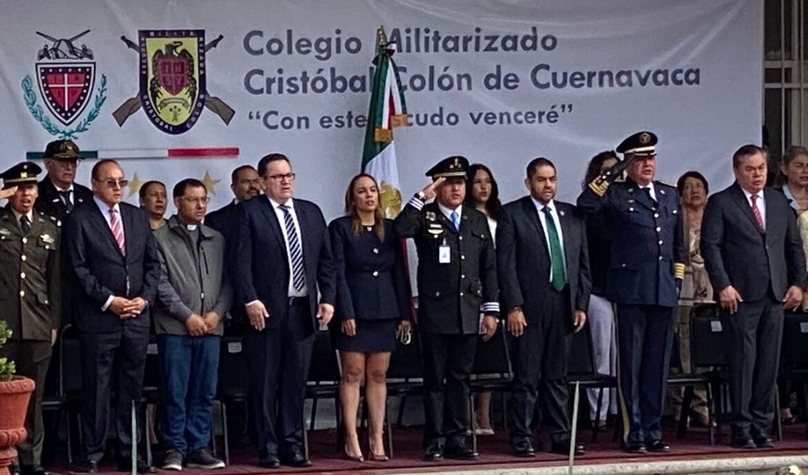 En representación del secretario de Gobierno, Juan Salgado Brito, el director general Jurídico, Armando Hernández Del Fabbro, acudió a invitación del Colegio Militarizado Cristóbal Colón de Cuernavaca al 80 aniversario de la institución, donde se hizo entrega de un reconocimiento y una medalla a Margarita González Saravia, por ser la primera mujer gobernadora que ha impulsado el desarrollo integral de las y los estudiantes.
