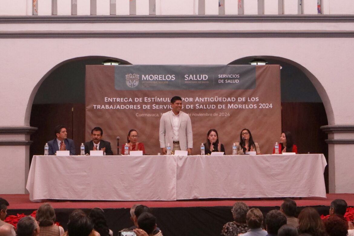 El Ejecutivo estatal encabezado por la gobernadora Margarita González Saravia, a través de la Secretaría de Salud y Servicios de Salud de Morelos (SSM), entregó estímulos por antigüedad a 137 trabajadores del organismo público descentralizado, en reconocimiento a 20, 25, 30, 35, 40, 45, 50 y 55 años de servicio.