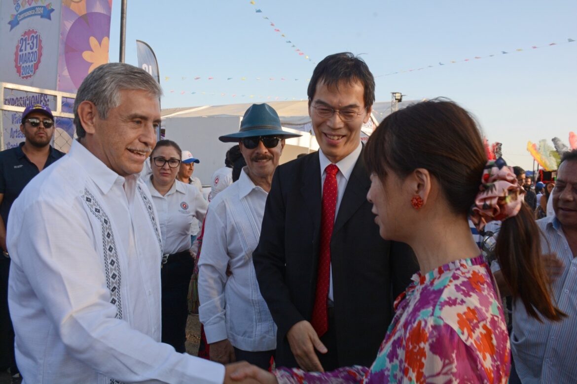 Al son de los tradicionales chinelos y la música interpretada por estudiantes de la Academia Benning, el presidente municipal de Cuernavaca acompañado del ministro Tsukasa Hirota y su esposa Naoko, en representación del Embajador de Japón en México, Noriteru Fukushima, iniciaron formalmente las actividades de la Feria de la Flor 2024 donde hasta el domingo 31 de marzo los asistentes podrán disfrutar de distintas actividades culturales, musicales, comerciales y recreativas de talla nacional e internacional, contando por primera ocasión en su historia con Japón como país invitado.
