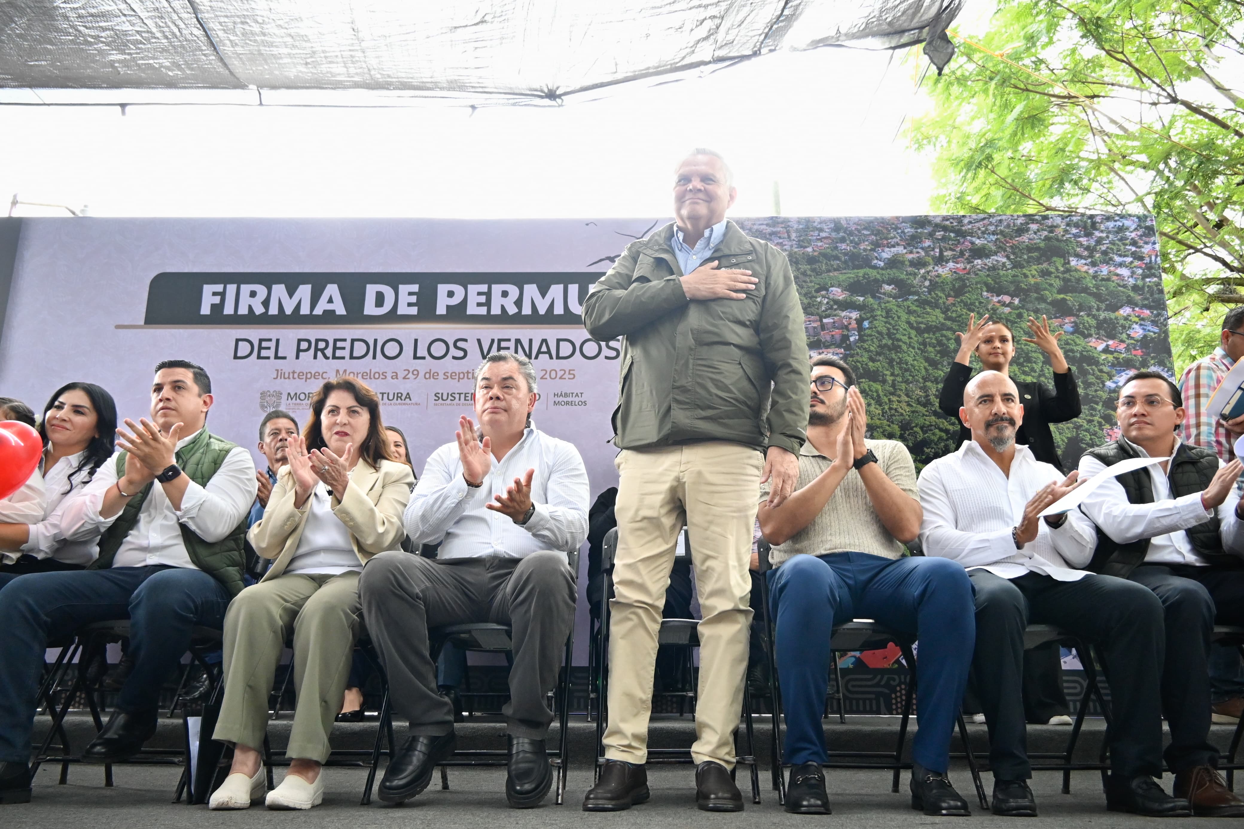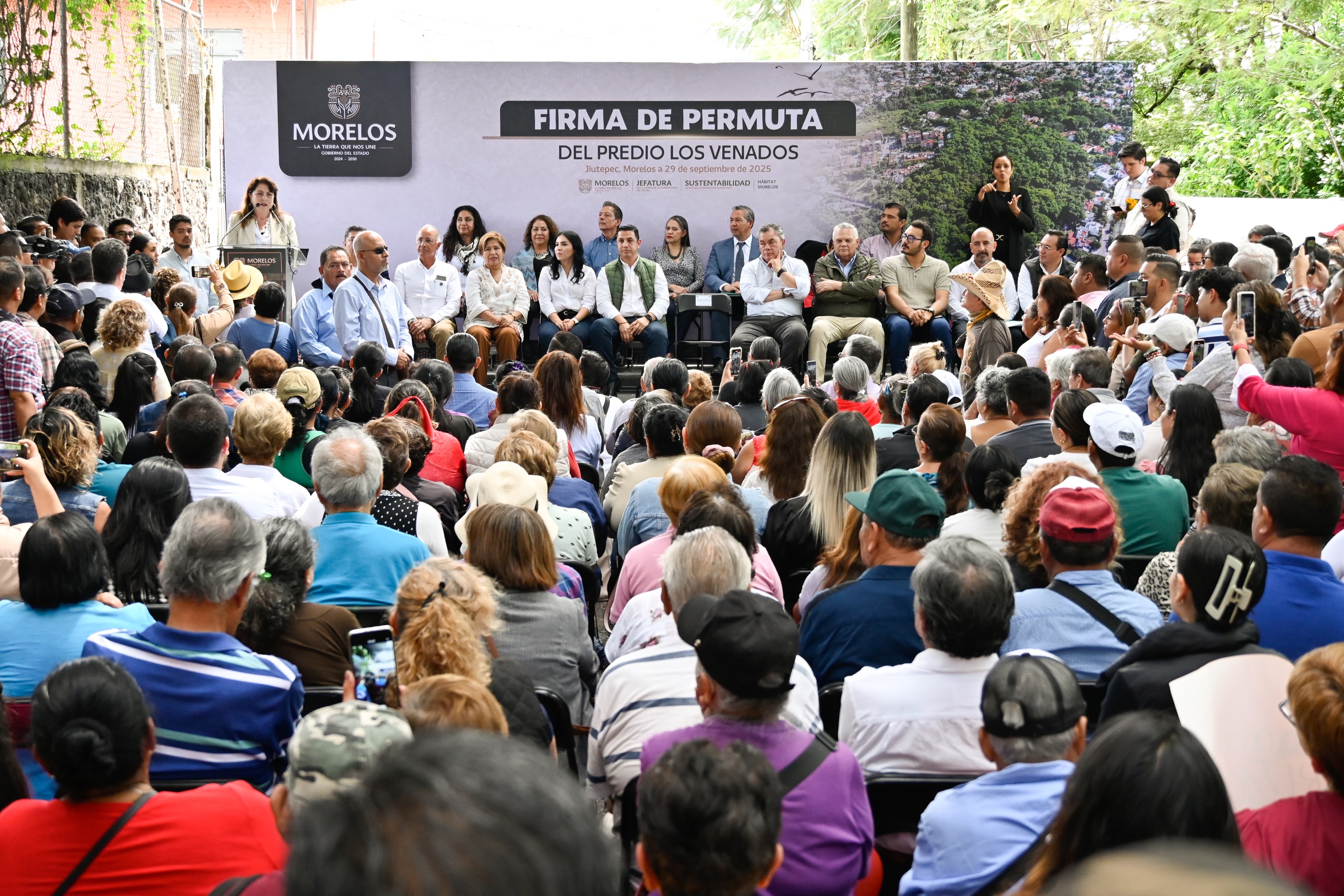 Con el objetivo de proteger las áreas naturales y contar con más espacios públicos para la ciudadanía, la gobernadora del Estado de Morelos, Margarita González Saravia, firmó como testigo de honor el convenio de permuta entre el Gobierno estatal y la empresa Casas Ara, mediante el cual se recupera el predio “Los Venados”, de 5.6 hectáreas, ubicado en el Centro de Jiutepec.