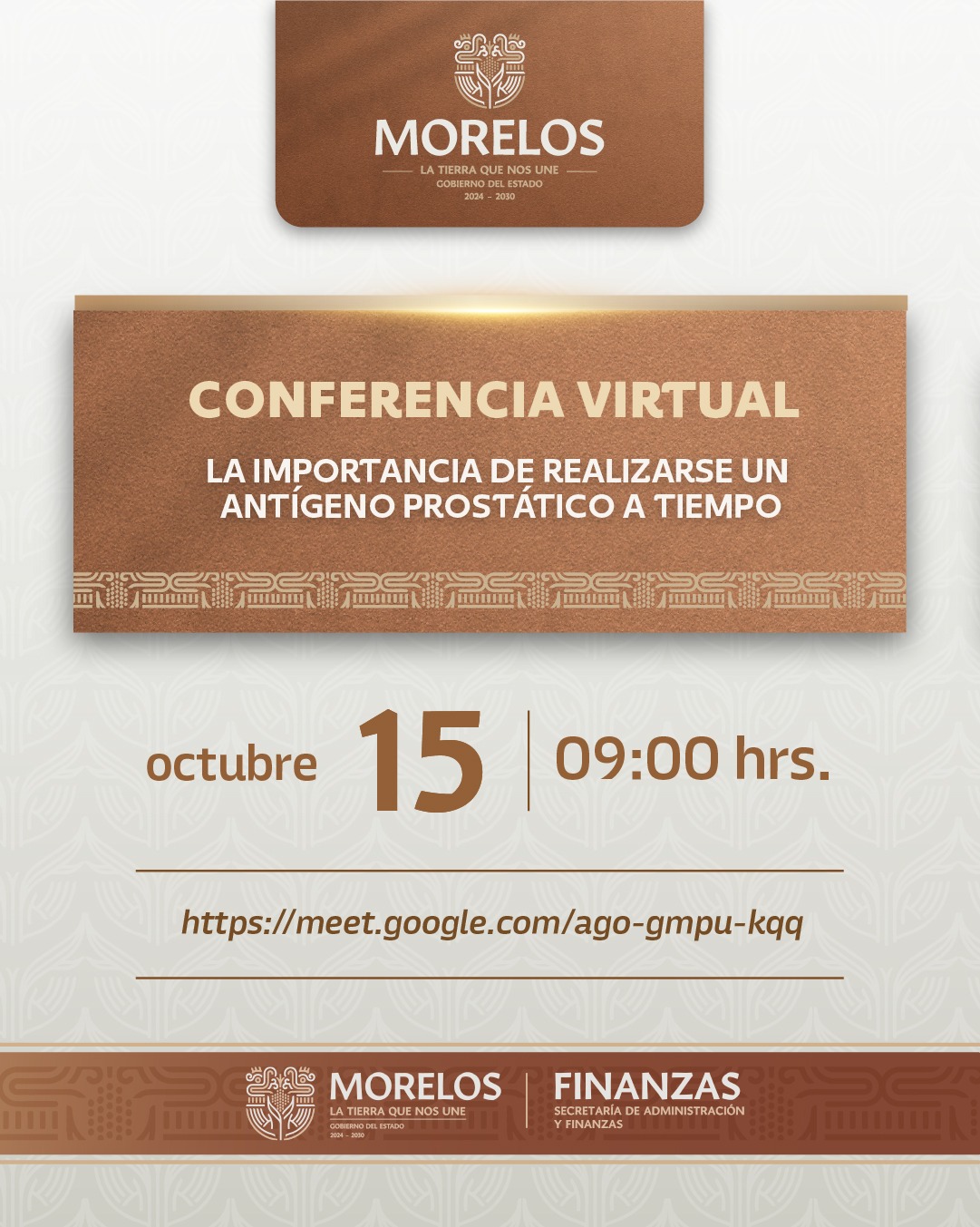 A fin de promover la prevención y detección oportuna del cáncer de próstata, la Secretaría de Administración y Finanzas, a través de la Dirección General de Recursos Humanos, llevará a cabo la conferencia virtual “La importancia de realizarse un antígeno prostático a tiempo”, dirigida al personal laboral.