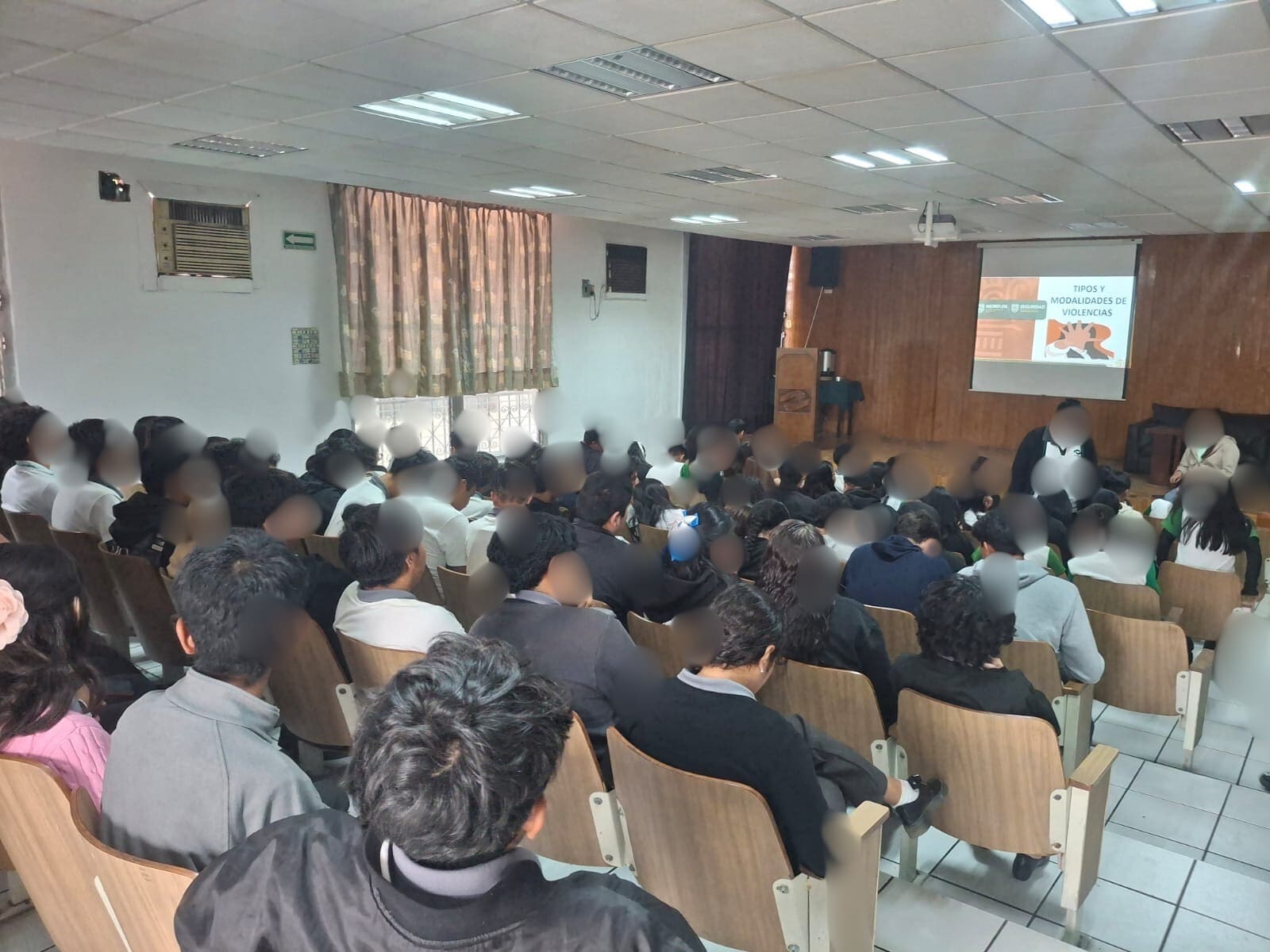 La actividad fue desarrollada por personal del Centro Estatal de Prevención Social de la Violencia y la Delincuencia con Participación Ciudadana, con el propósito de que alumnas y alumnos de nivel medio superior identifiquen los distintos tipos de violencia que pueden presentarse en la escuela, en la familia, en las relaciones de pareja y en los entornos digitales.