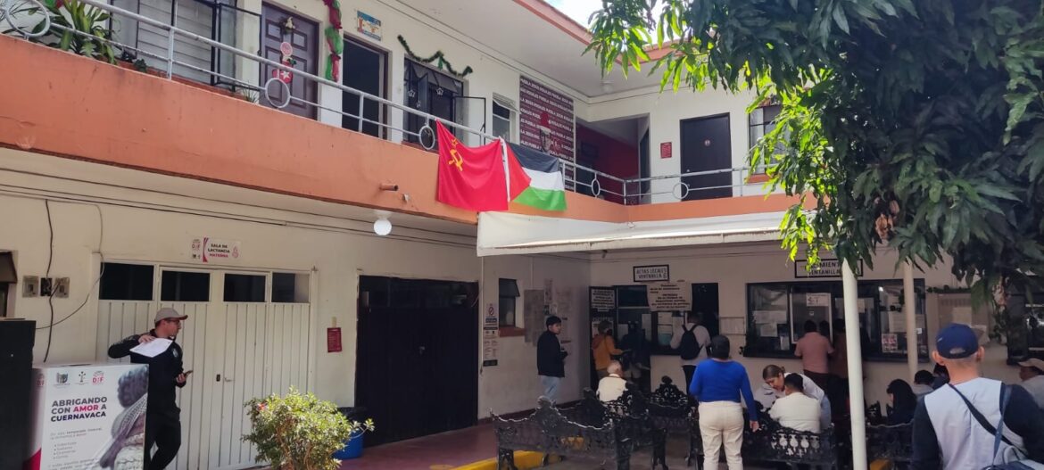 Contribuyentes criticaron que al interior de la presidencia municipal de Cuernavaca personal de la regiduría del Partido del Trabajo coloquen banderas de la extinta de la Unión Soviética y de Palestina; autoridades responden que lo hacen solo solicitado que se frenen los asesinatos en contra de niñas, niños, adolescentes, mujeres y adultos mayores, “estamos en nuestro derecho”.