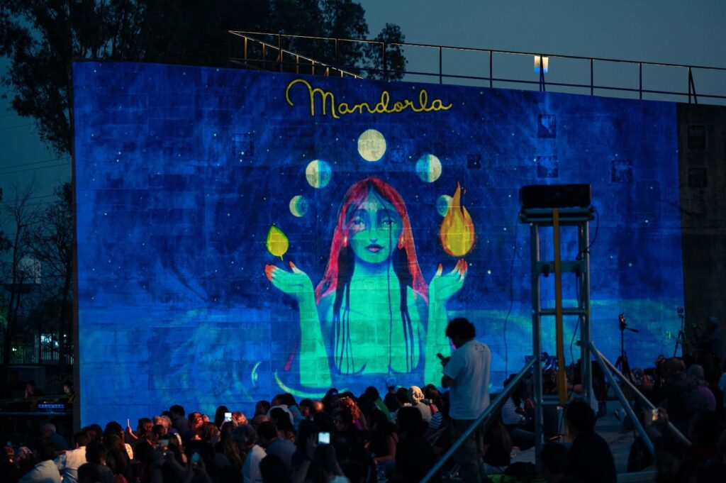 La noche contó con la presentación de Mandorla, ensamble morelense integrado por mujeres músicas que fusiona tradiciones de los pueblos gitanos, gipsy jazz, sonoridades balcánicas y klezmer con folklores latinoamericanos. Fundado en 2015 en Cuernavaca, el grupo ha participado en diversos festivales y foros culturales del país y cuenta con un disco homónimo disponible en plataformas digitales. Su propuesta artística conjuga música, danza y reflexión sobre la identidad femenina.