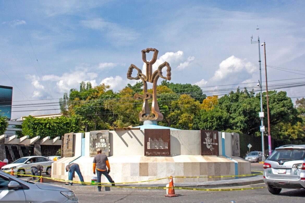 • Se retiraron los tapiales que rodeaban a la rotonda para evitar problemas al tránsito vehicular y se colocó la pieza central que es la toponimia de Cuernavaca