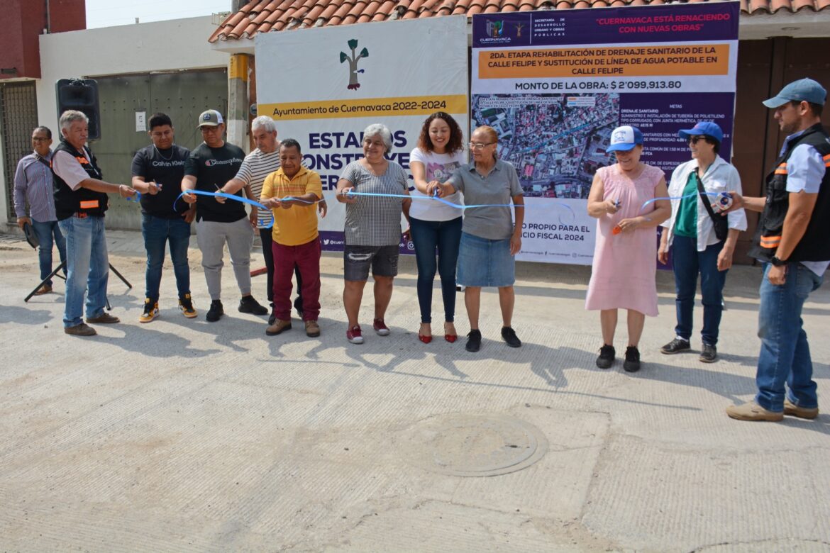 Como muestra de la efectividad que tienen los Cabildos Abiertos, el Ayuntamiento de Cuernavaca entregó la segunda etapa de rehabilitación del drenaje sanitario y sustitución de línea de agua potable de la calle Felipe en la colonia Lotes Alegría, obra inaugurada con la que se da respuesta a una petición hecha por los vecinos en este ejercicio de participación ciudadana.