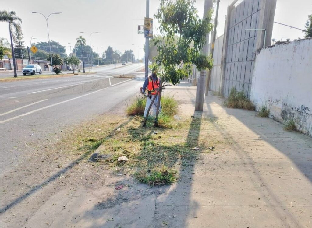 Durante esta jornada, el personal realizó trabajos de deshierbe, recolección de residuos, poda y limpieza general, acciones que contribuyen a mantener espacios más seguros, ordenados y agradables para quienes transitan diariamente por esta importante vía.