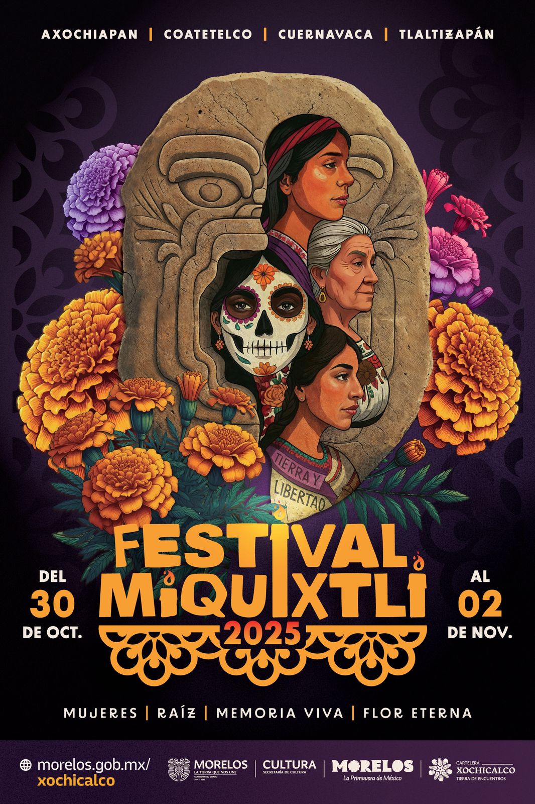 • El Festival Miquixtli 2025 celebra su edición 32 bajo el lema “Mujeres, Raíz, Memoria Viva, Flor Eterna”, reconociendo a quienes han sido pilares en la historia y la cultura de Morelos.