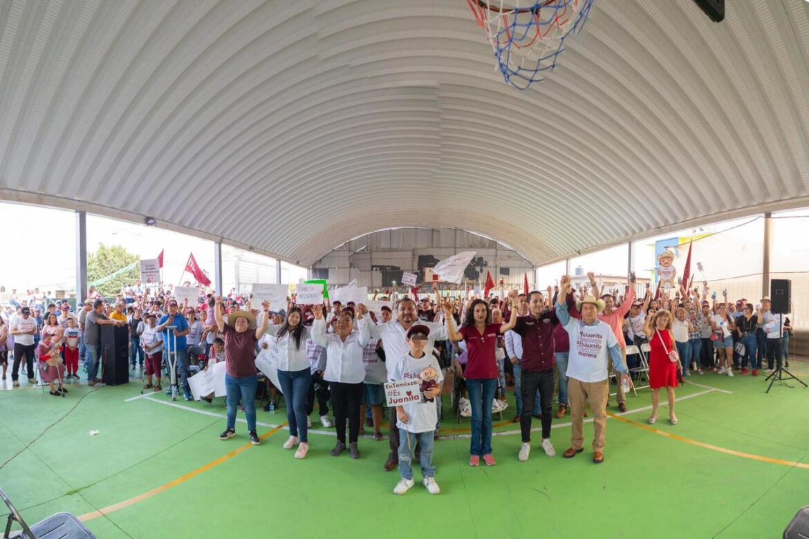 Cientos de habitantes, simpatizantes, líderes sociales, familias completas abarrotaron la Ayudantía de la Delegación Rubén Jaramillo donde recibieron con Chinelos y banda de viento a las y los candidatos del Partido Movimiento Regeneración Nacional (MORENA) encabezados por la candidata a la Presidencia Municipal Juanita Ocampo.