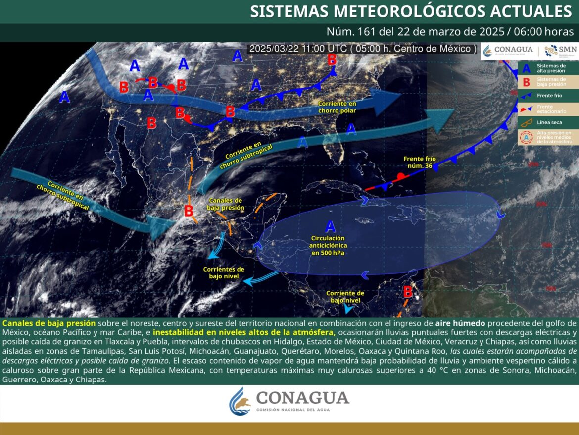 La Comisión Estatal del Agua (Ceagua) da a conocer la perspectiva meteorológica durante este 22 y 23 de marzo, en la cual, el estado de Morelos experimentará cambios en las condiciones climáticas, con posibilidad de lluvias ligeras durante la tarde-noche del sábado y un ambiente caluroso predominante el domingo.