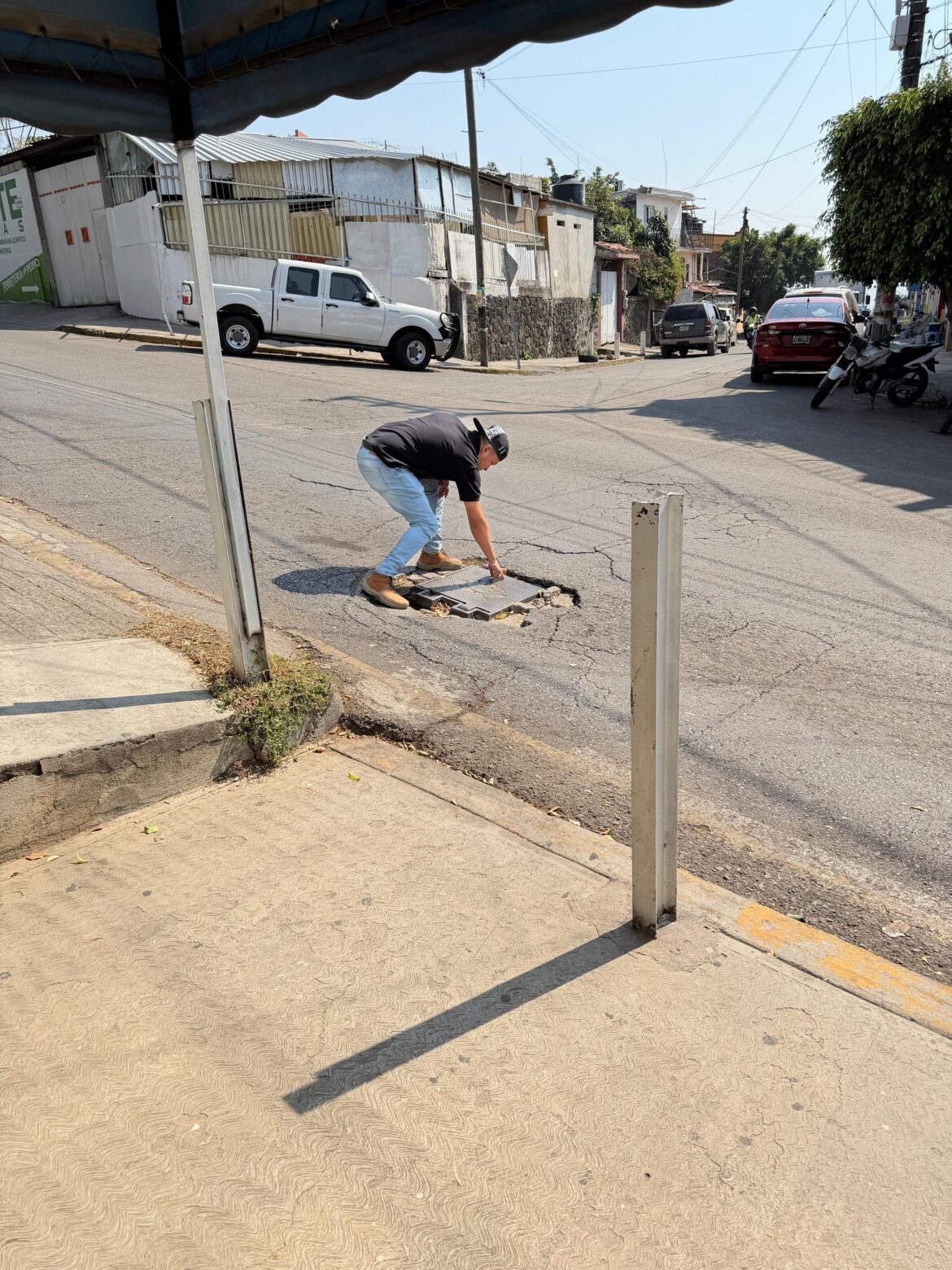 Derivado de los reportes recibidos a través de diversos medios de comunicación, en los que vecinos de la colonia Antonio Barona señalaron un hundimiento presuntamente ocasionado por el colapso de tubería del drenaje, personal del Sistema de Agua Potable y Alcantarillado de Cuernavaca (SAPAC) realizó una inspección técnica en la zona.